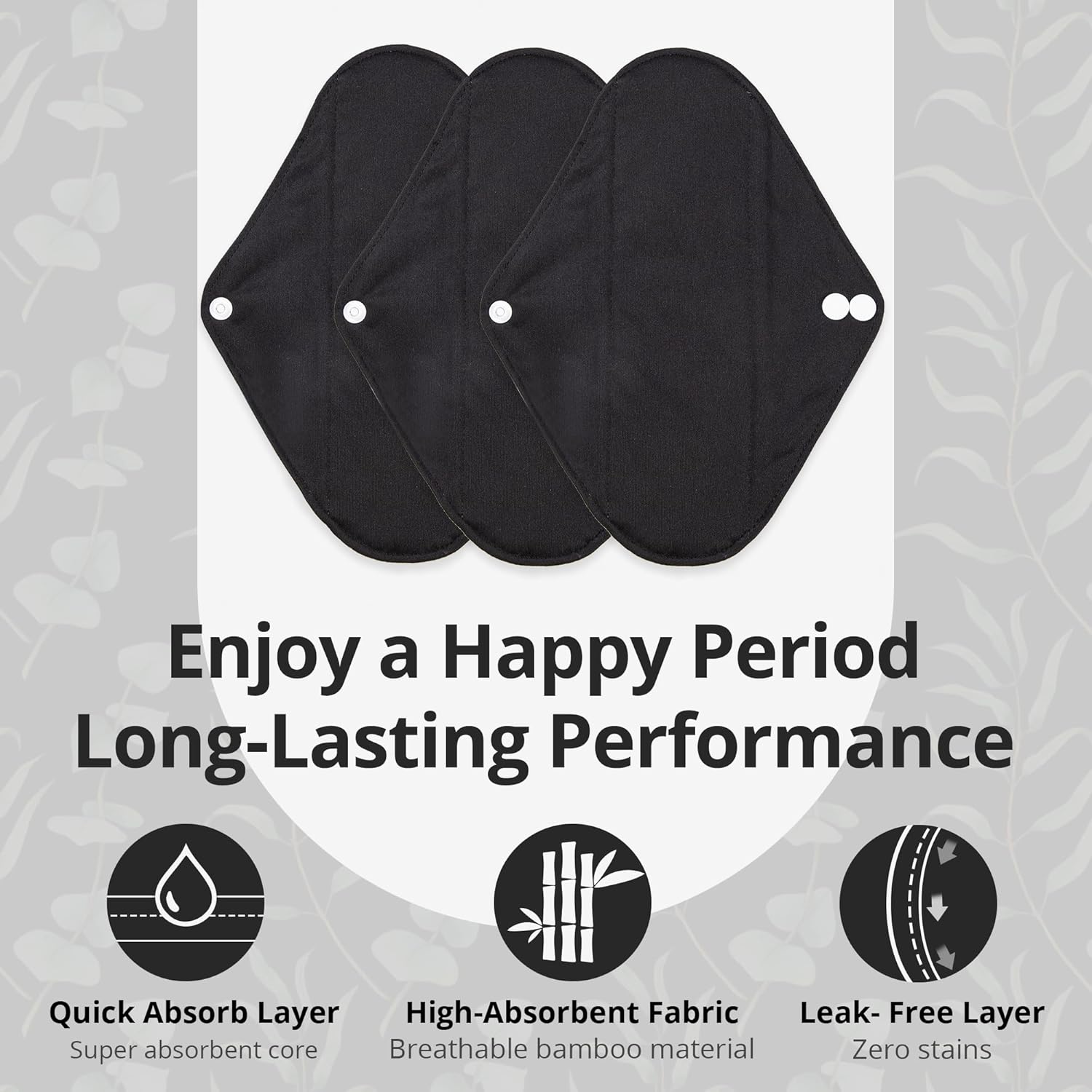 - Reusable Sanitary Pads: Charcoal infused reusable feminine pads capture heavy flow for up to 10 hours making our reusable sanitary pads better for overnight use than period panties, post partum maxi pads, disposable sanitary napkins, panty liners with wings, tampons, a menstrual period cup and even washable cloth incontinence pads for women.