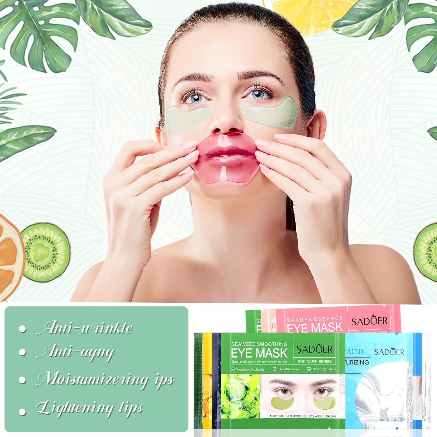 - 60 Pcs Individually Packaged Eye Masks: this product contains 10 eye masks, 6 pieces of each type, including seaweed, caviar, cherry, hyaluronic acid, red pomegranate, and pearl nourishing; Each pair of eye masks is individually packaged to ensure no contamination; Sufficient quantity for continuous use