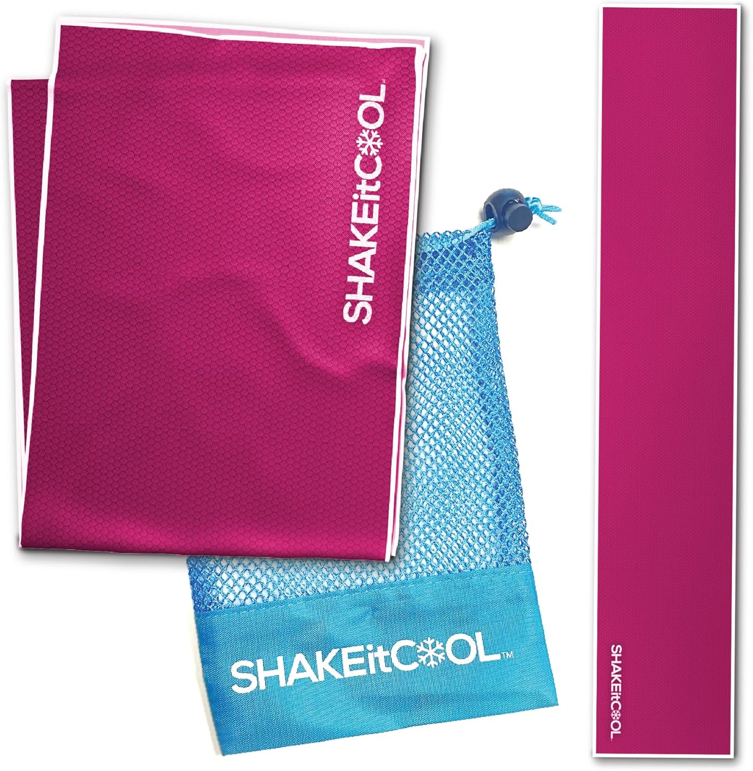 SHAKEitCOOL Original Cooling Towel – Be Cool in Style - Heat Relief, Soft, Lightweight, Sun Protection, Easy Clean - Perfect for Biking, Running, Yoga, Gym, Gardening - Berry