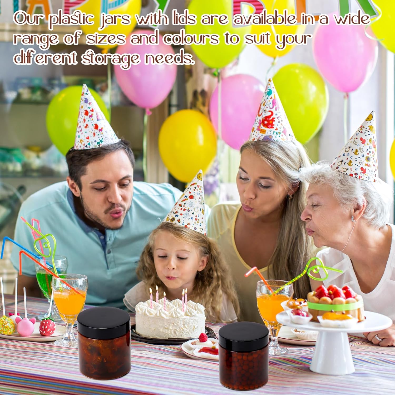 - What you receive: there are 4 pieces of plastic jars with black screw on lids; They are reliable and refillable, measuring about 8 oz in capacity