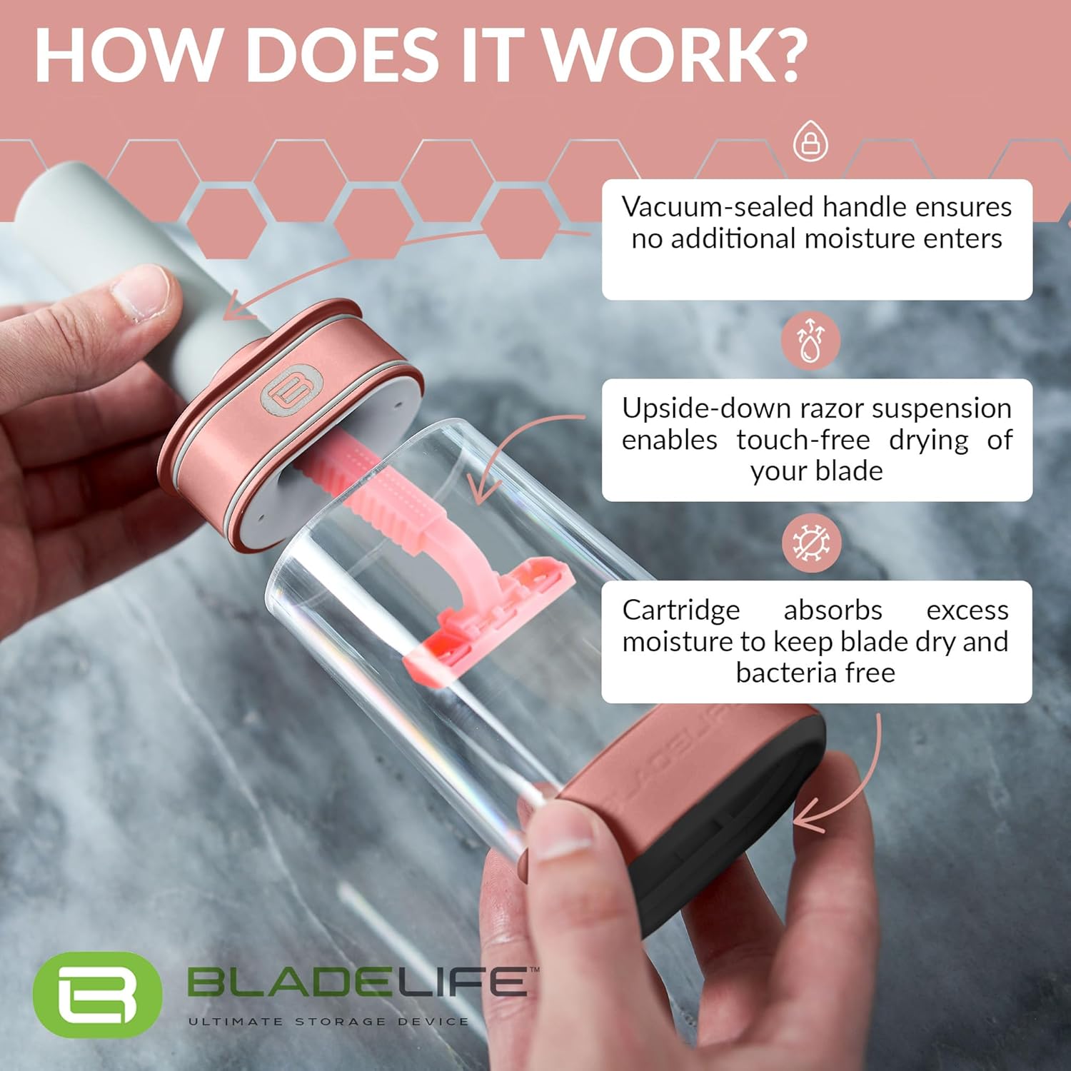 BLADELIFE Razor Storage Device for Women & Men Rose Gold - Fits All Leading Razors - Doubles The Life of Your Blade - Razor Travel Case 2024 New Model