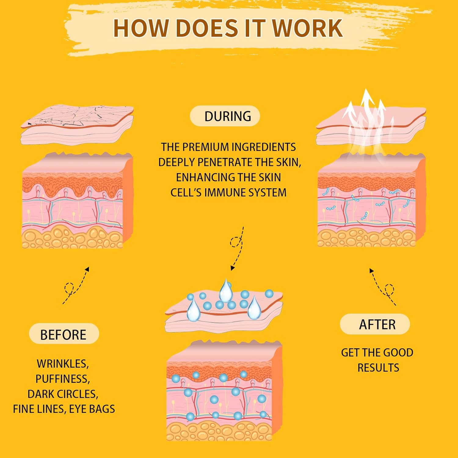 - Tips and Care Instructions: Our eye masks feature a premium essence that might shift slightly during application. To ensure they stick well, gently press the mask against your skin for about a minute, ensuring there are no air gaps, removing excess essence if needed. For best results, use the eye patches daily. Keep them in the fridge before use for a more soothing effect, but avoid freezing them. These tips ensure you maximize the benefits of your eye masks and related eye treatment products.