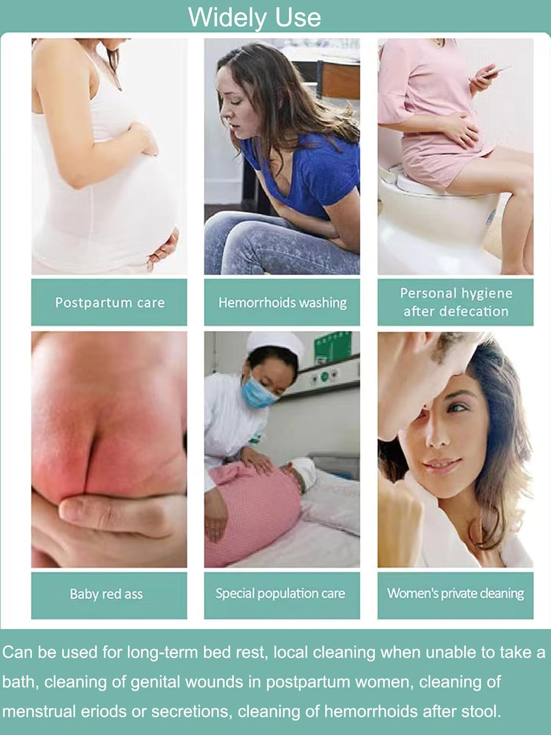 - Widely Use:This body spray can be used by men, women and children, but it cannot be mixed with others. It can be used for long-term bed rest, local cleaning when unable to take a bath, cleaning of genital wounds in postpartum women, cleaning of menstrual periods or secretions, cleaning of hemorrhoids after stool.