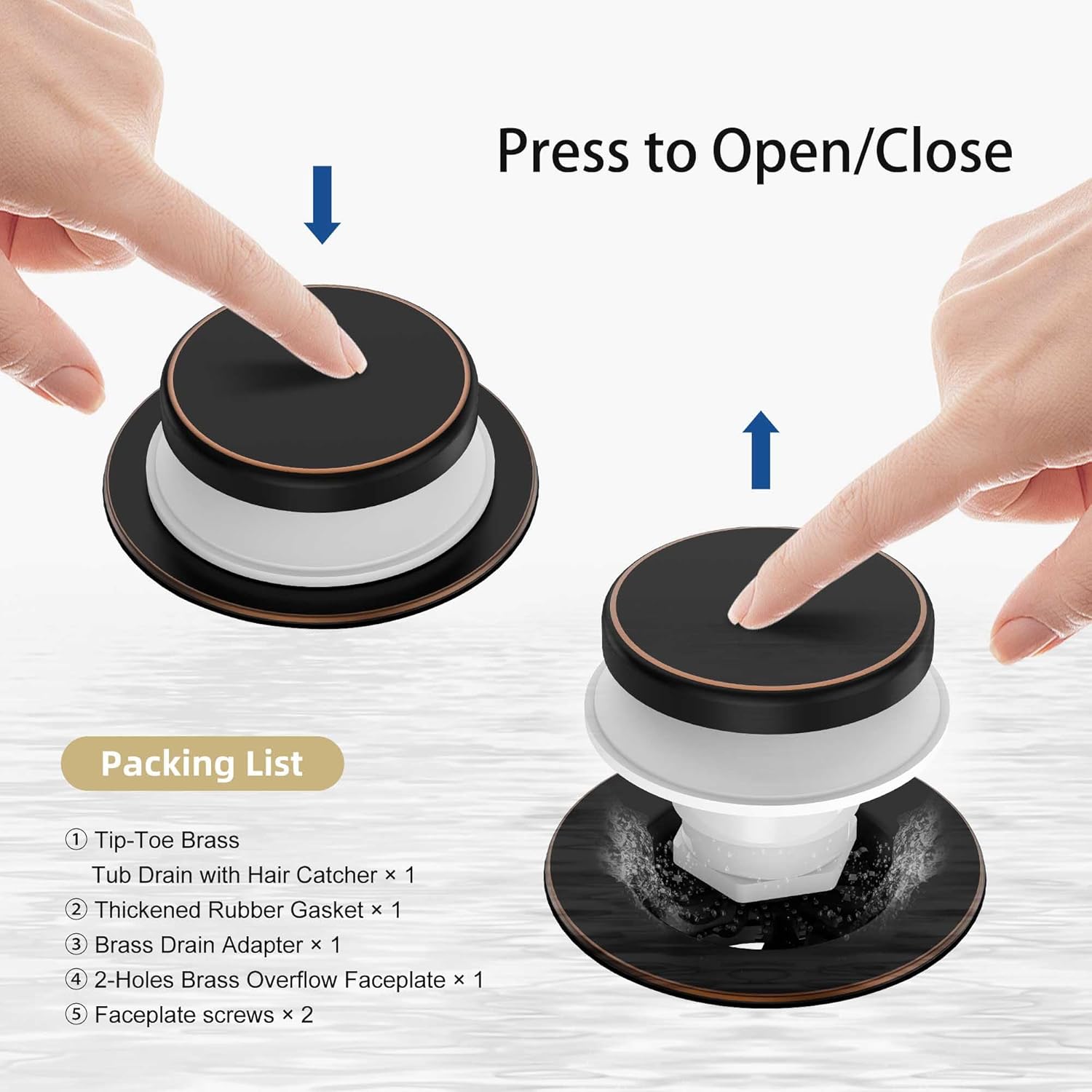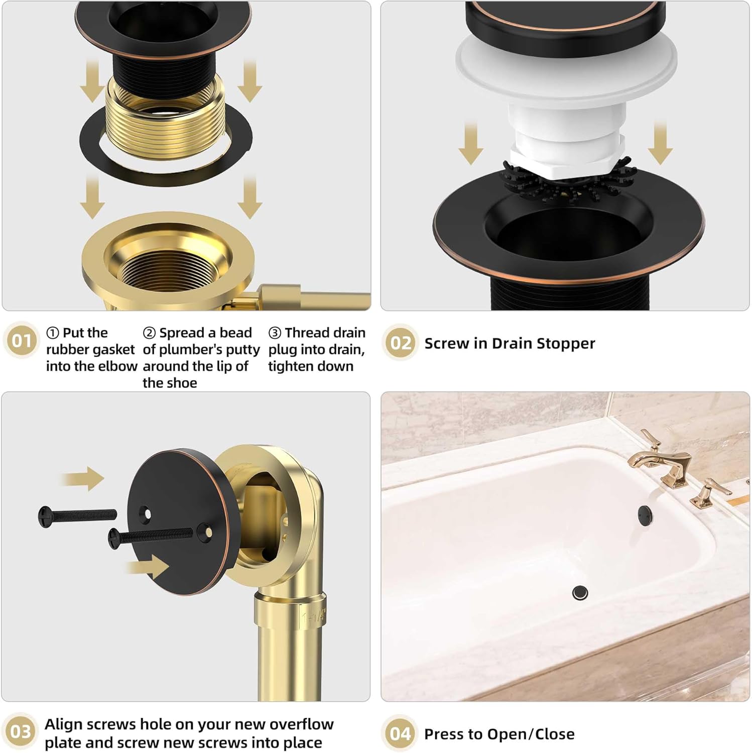 - Beautiful Finish: Anti-fingerprint oil rubbed bronze tip-toe bathtub drain matches your faucet and bathroom decor; 5-layer electroplating protects against rust, peeling, and corrosion; maintains appearance over time