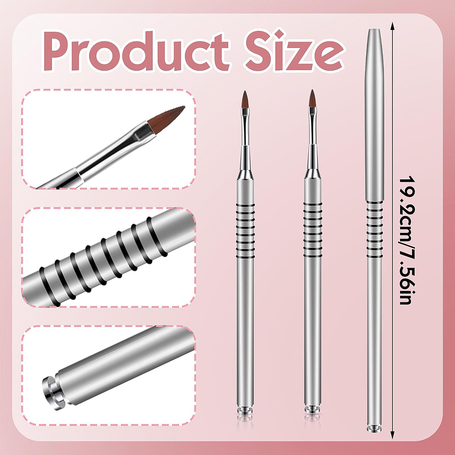 2 Pack 3D Nail Art Brush for Acrylic, Kolinsky Acrylic Nail Brushes Set, Nail Lining Brush Nail Salon Painting Brush Pen with Non-Slip Handle, Silver Metal Nail Art Pen (Size #2)