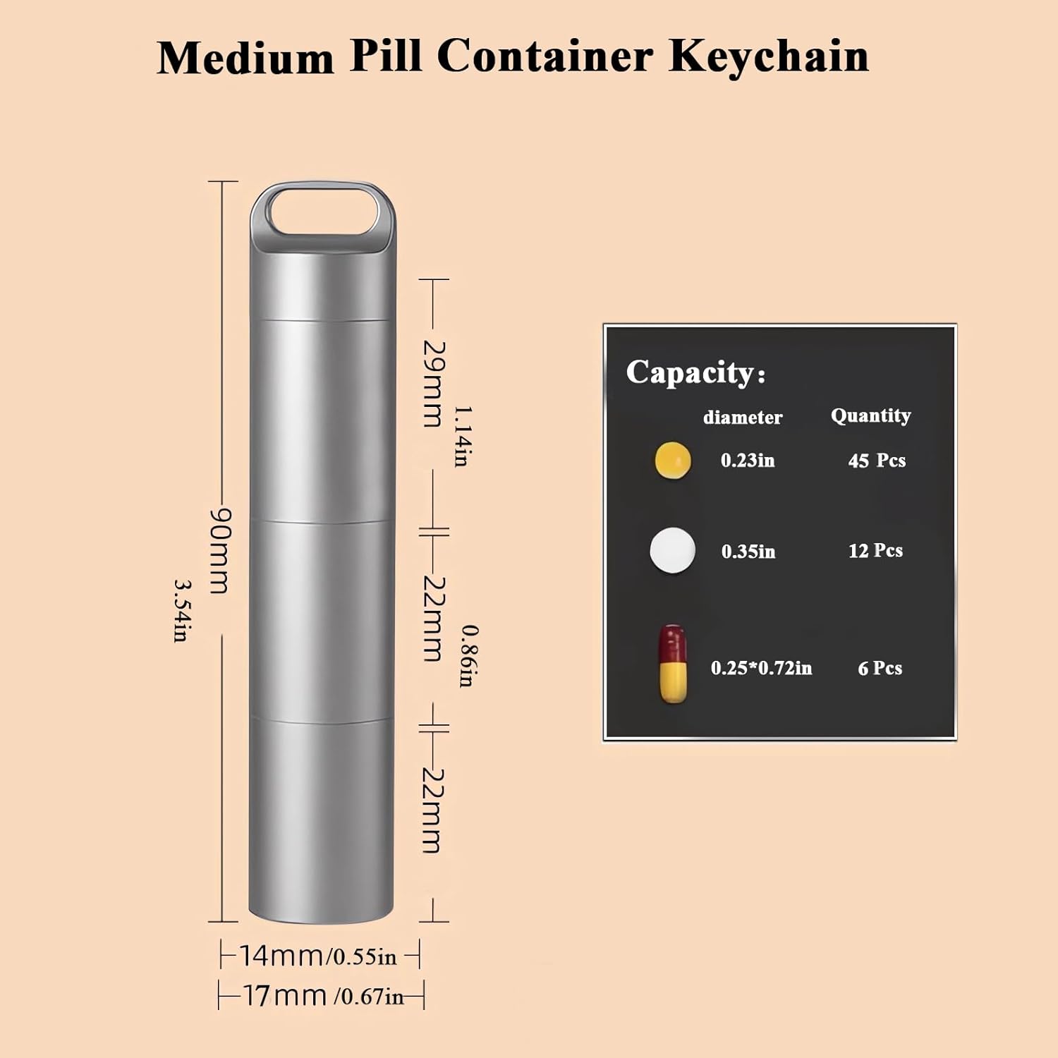 Small Keychain Pill Holder,304 Stainless Steel Portable Pill Case Organizer for Travel,Waterproof Pocket Pill Container Medicine Box for Purse Men (Medium Portable Pill Case)