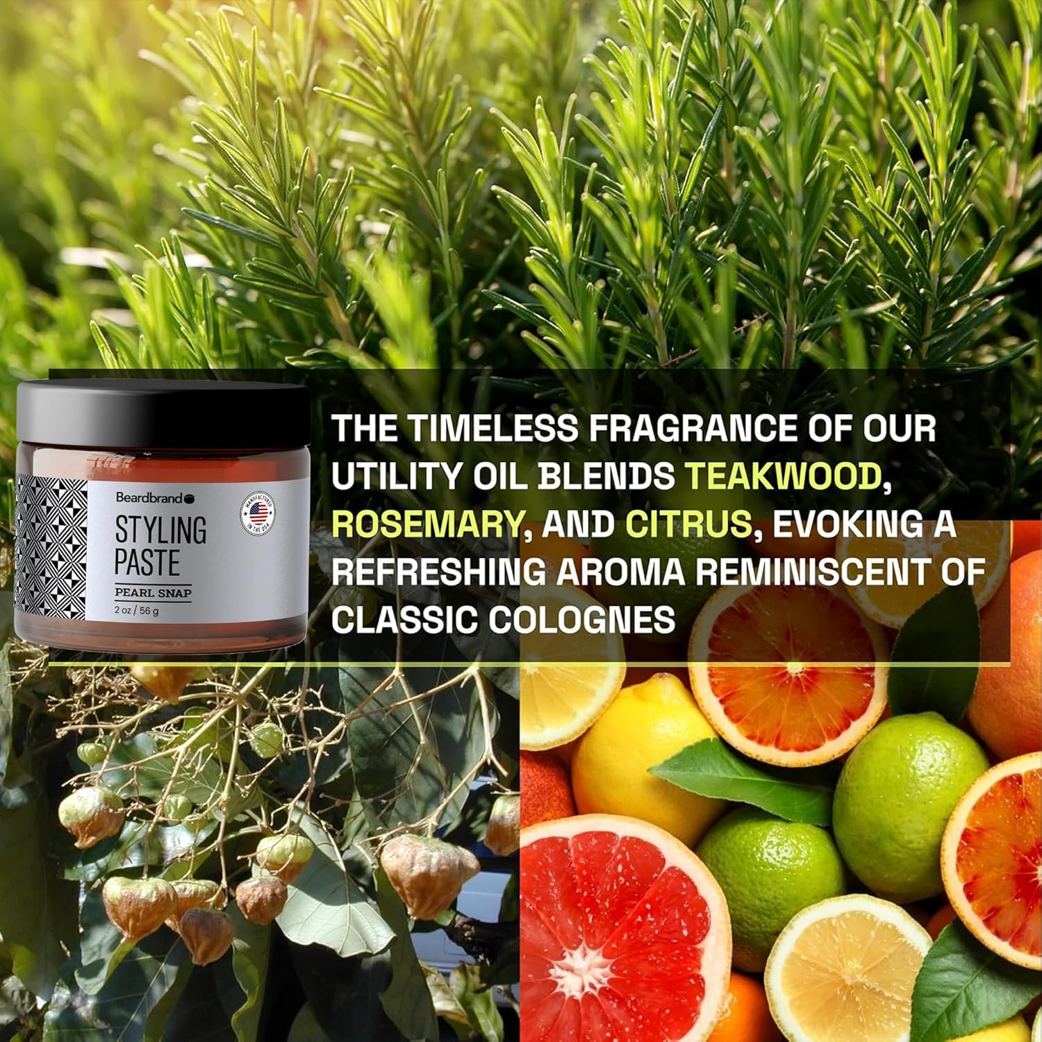 Beardbrand Beard Styling Paste - Medium Hold and Natural Look Hair Paste for Men - Versatile Hair Styling Cream - Teakwood, Rosemary, & Citrus Scent- 56 grams