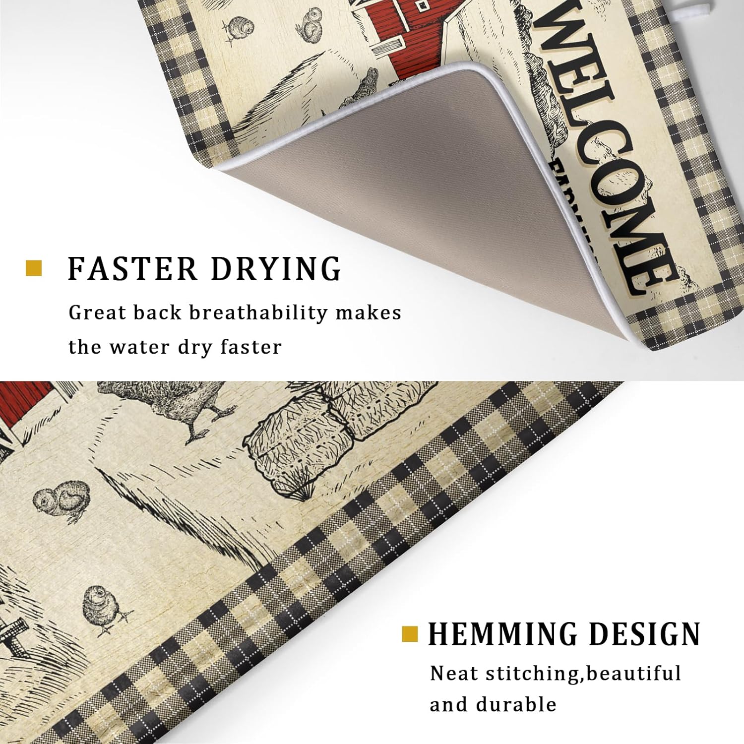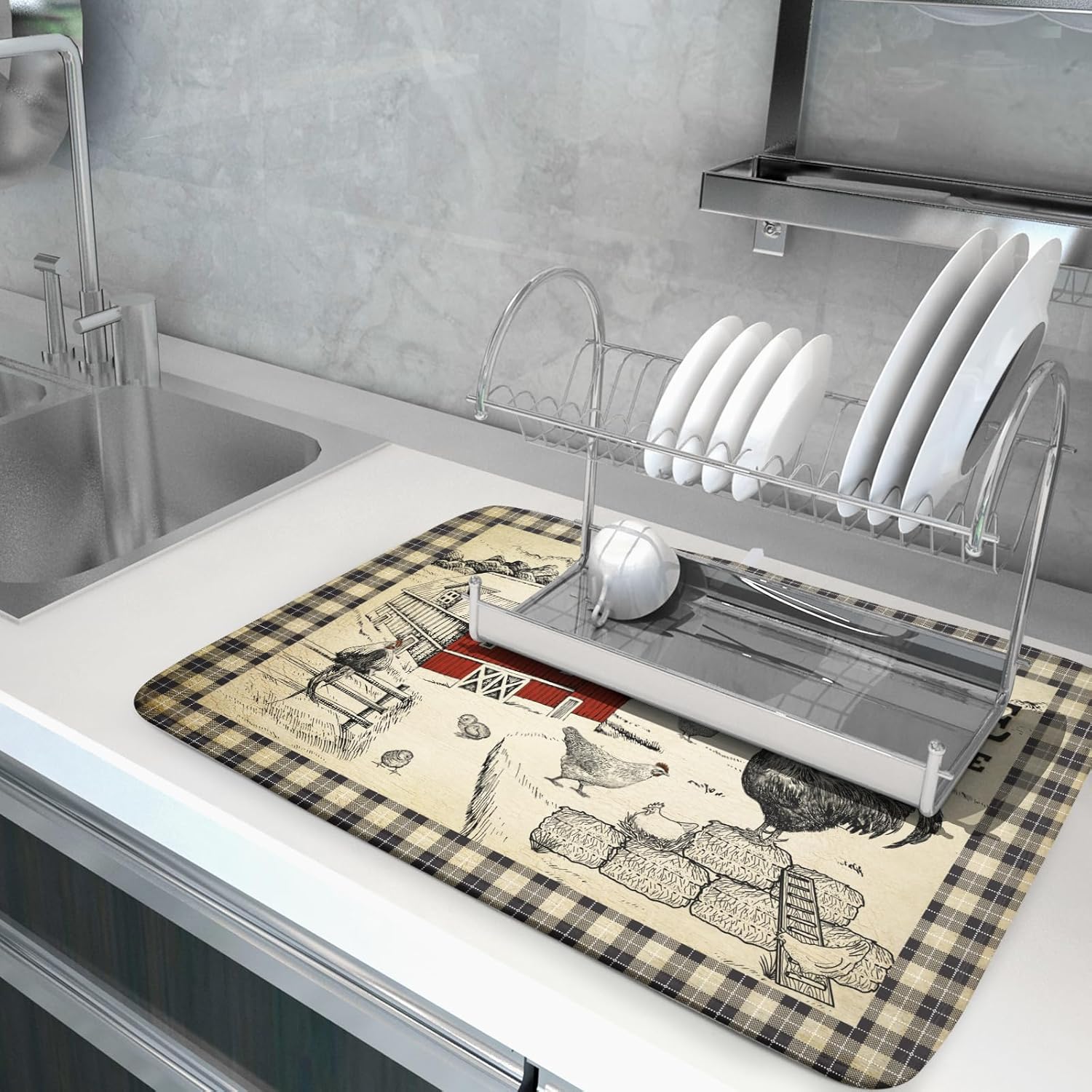 Farmhouse Rooster Dish Drying Mat 18x24 Inch Country Chicken Absorbent Dish Drainer Mat Reversible Countertops Protector Pad Kitchen Accessories