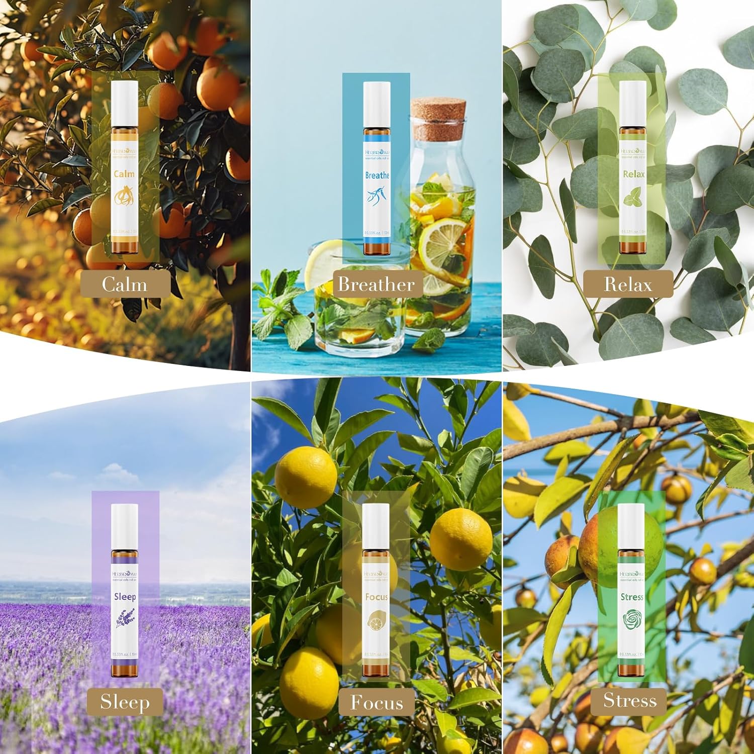 Relaxation Aromatherapy Essential Oil Roll On Gift for Women, Natural & Pure with Travel Size Roller Ball Bottle 0.33 Fl.oz. Each