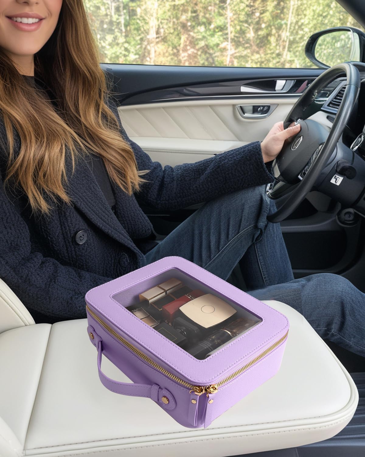 Travel Clear Makeup Bag Set, TSA Approved Cosmetic Bag Case with Zipper Portable Makeup Pouch Toiletry Bag Women Traveling Cosmetic Organizer Storage Bag Car Organizer Car Essentials for Women