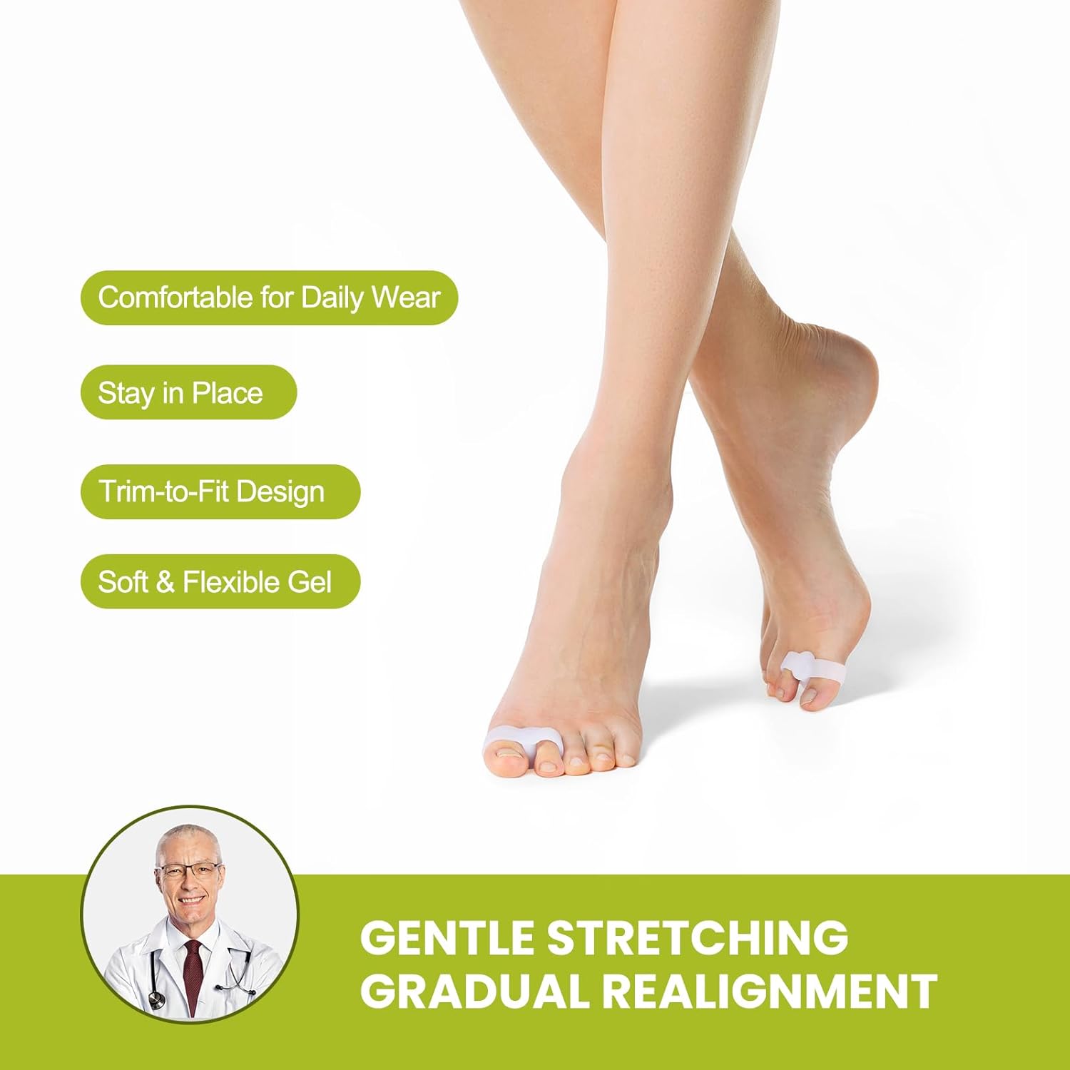 - Soft & Comfortable Material: Big toe separator made of high-quality silica gel, which is latex-free, soft, and safe. Protect your toe while in physical activities or in other daily work.