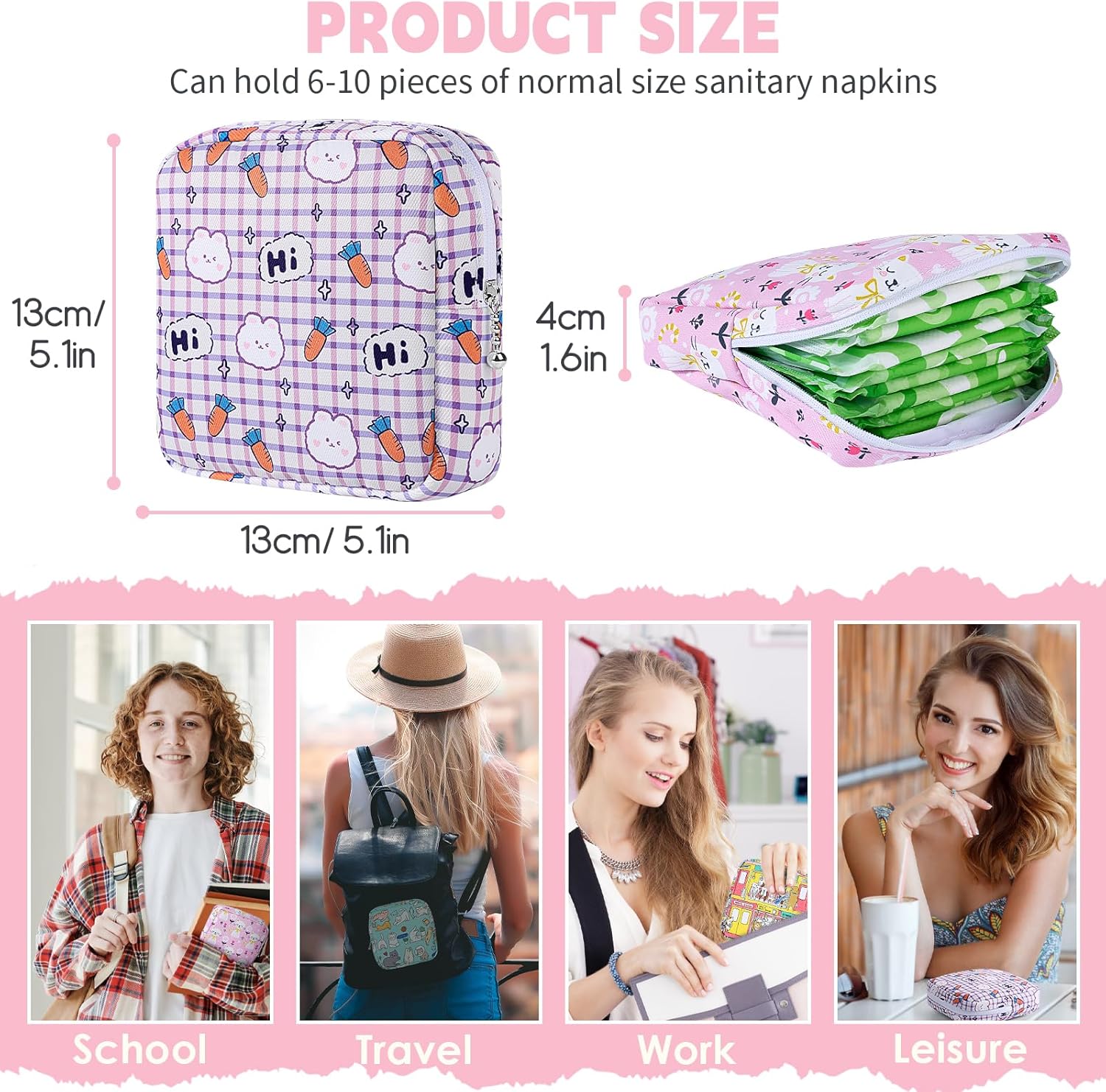 - 👝 【Perfect Size for Period Essentials】 - This compact period bag (5.1 x 5.1 x 1.6 in / 13 x 13 x 4 cm) easily holds 6-10 standard pads (Size 1-5) or a combination of pads, liners, and tampons, making it an ideal sanitary napkin storage bag for your purse or backpack