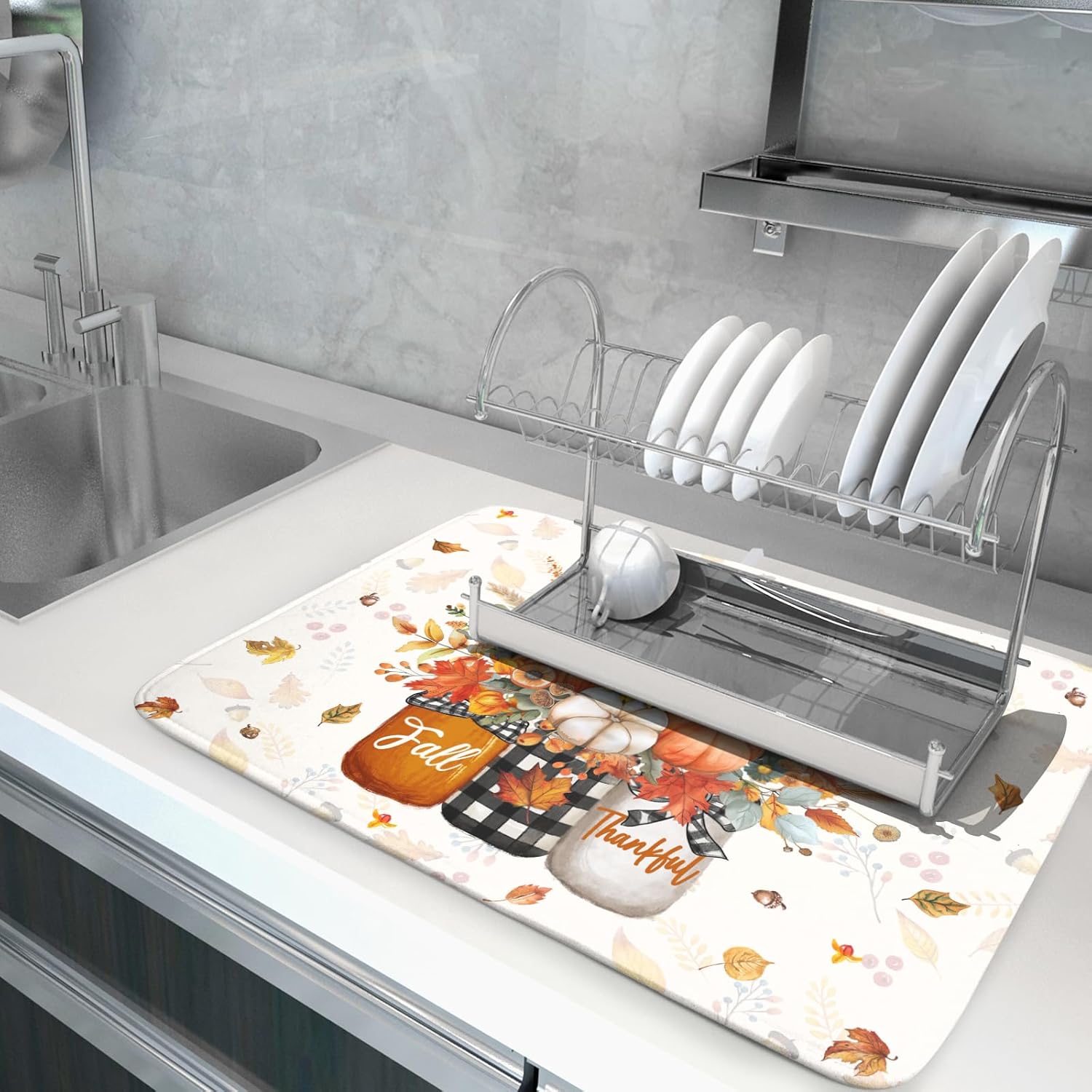 - 【Protect Tableware】Place your dishes on it or under dish racks, the autumn leaves dish mat prevents bowls, glassware, and more tablewares from being scratched or worn, can be used as dish drying mat, sink mat, dishes drainer mats to keep the countertop dry and tidy.