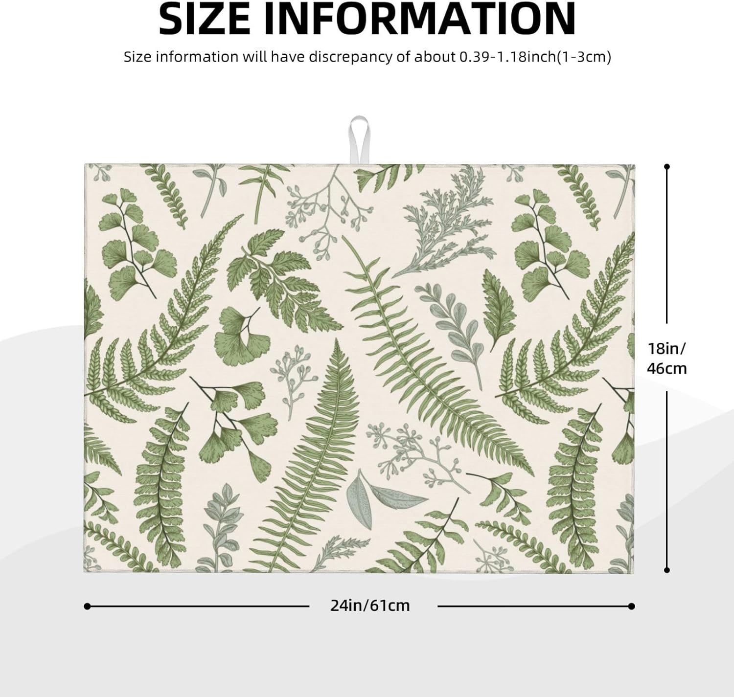 Vintage Botanical Leaves Dish Drying Mat For Kitchen Counter Absorbent Large Kitchen Fast Dry Pad Reusable Washable Protector Rack Large Mat 18 X 24
