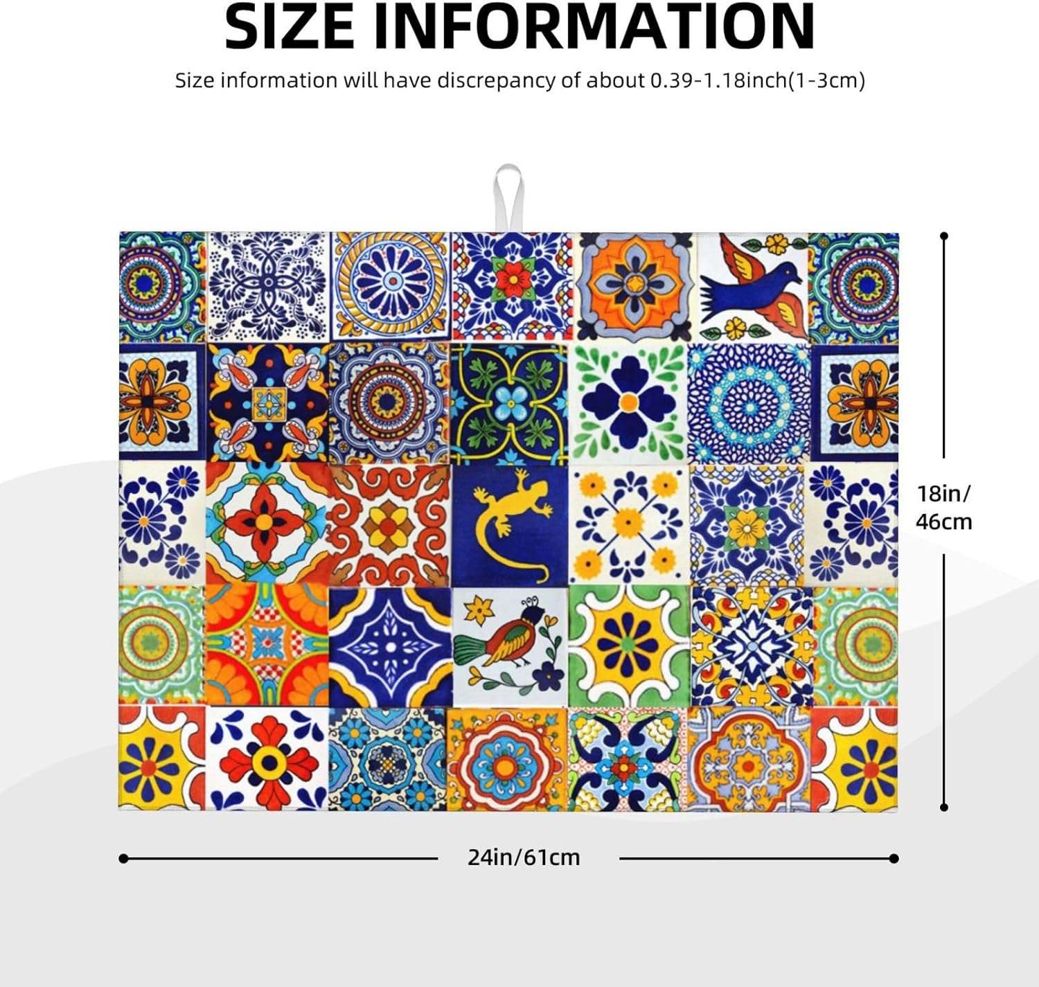 - Size: 18x24 Inches/45.7x60.9cm. The Design Of Two Sides Is Different, One Side Can Absorb The Moisture, And The Other Side Is Gray Anti-Slip Edge. Available In Various Rich Color Options To Complement Kitchen Decor.