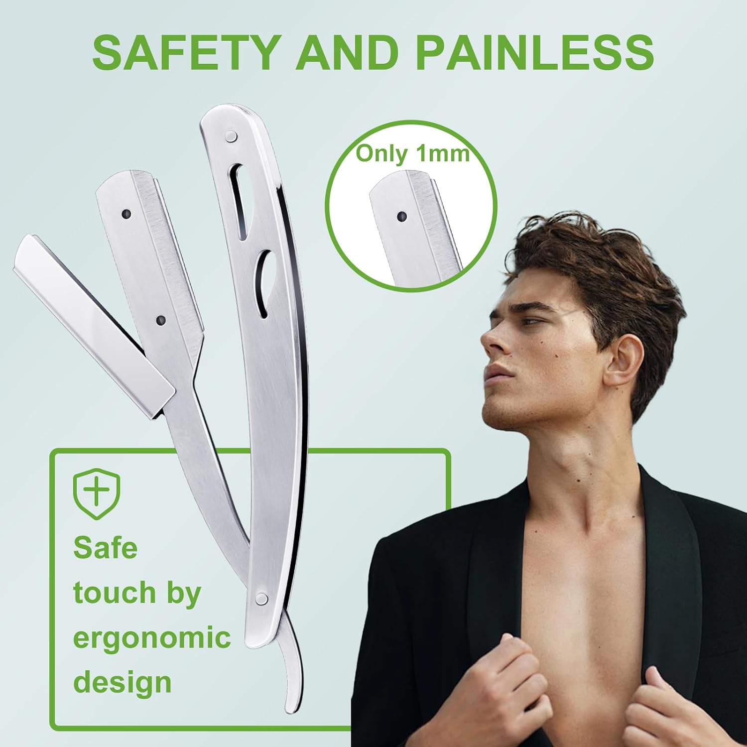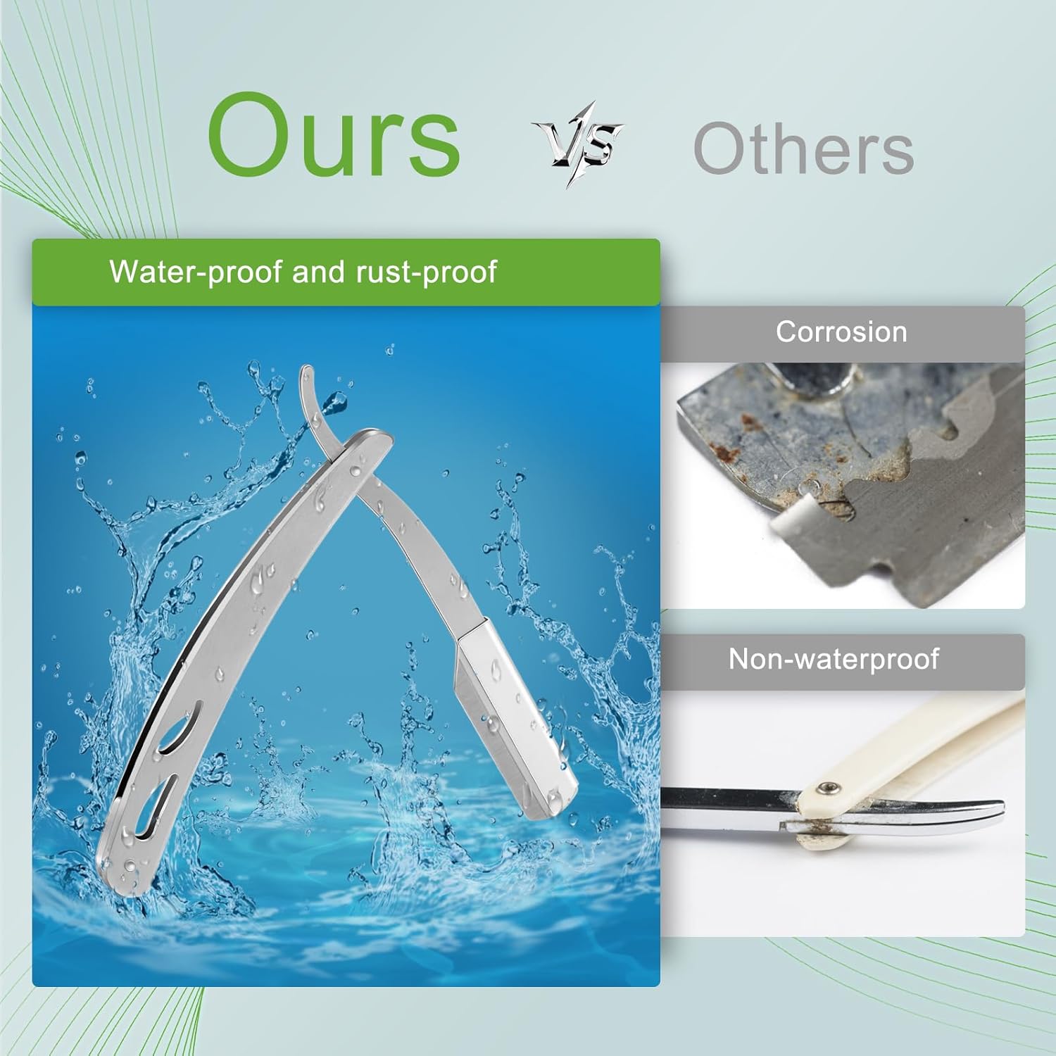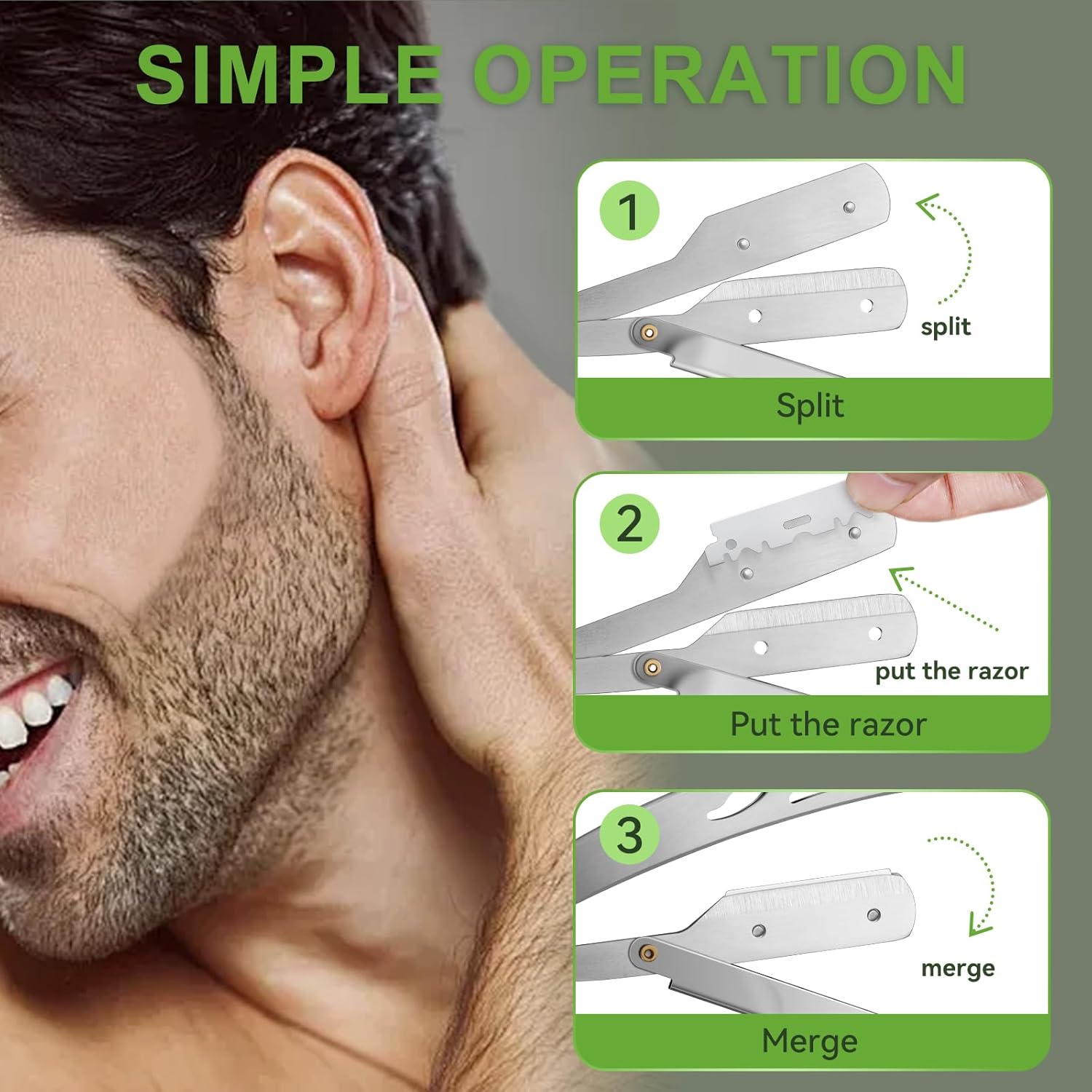 - Clean Shaving: The straight razor is made with sharp stainless steel blades that are finely polished to maintain a very high degree of sharpness, allowing you to easily shave through your beard and reduce beard pulling. The 20 replaceable blades make shaving more portable and efficient