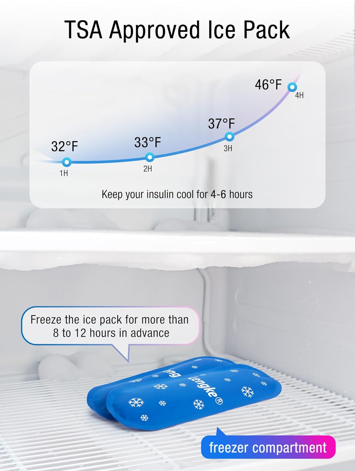 - 【Long Lasting Cold for Travel】 This insulin pen travel case comes with 2 gel ice packs. The insulin cooler can maintain your diabetic supplies at a suitable temperature for 4-6 hours, after freezing. This diabetic supply bag provides enough cooling time for a stress-free short trip.