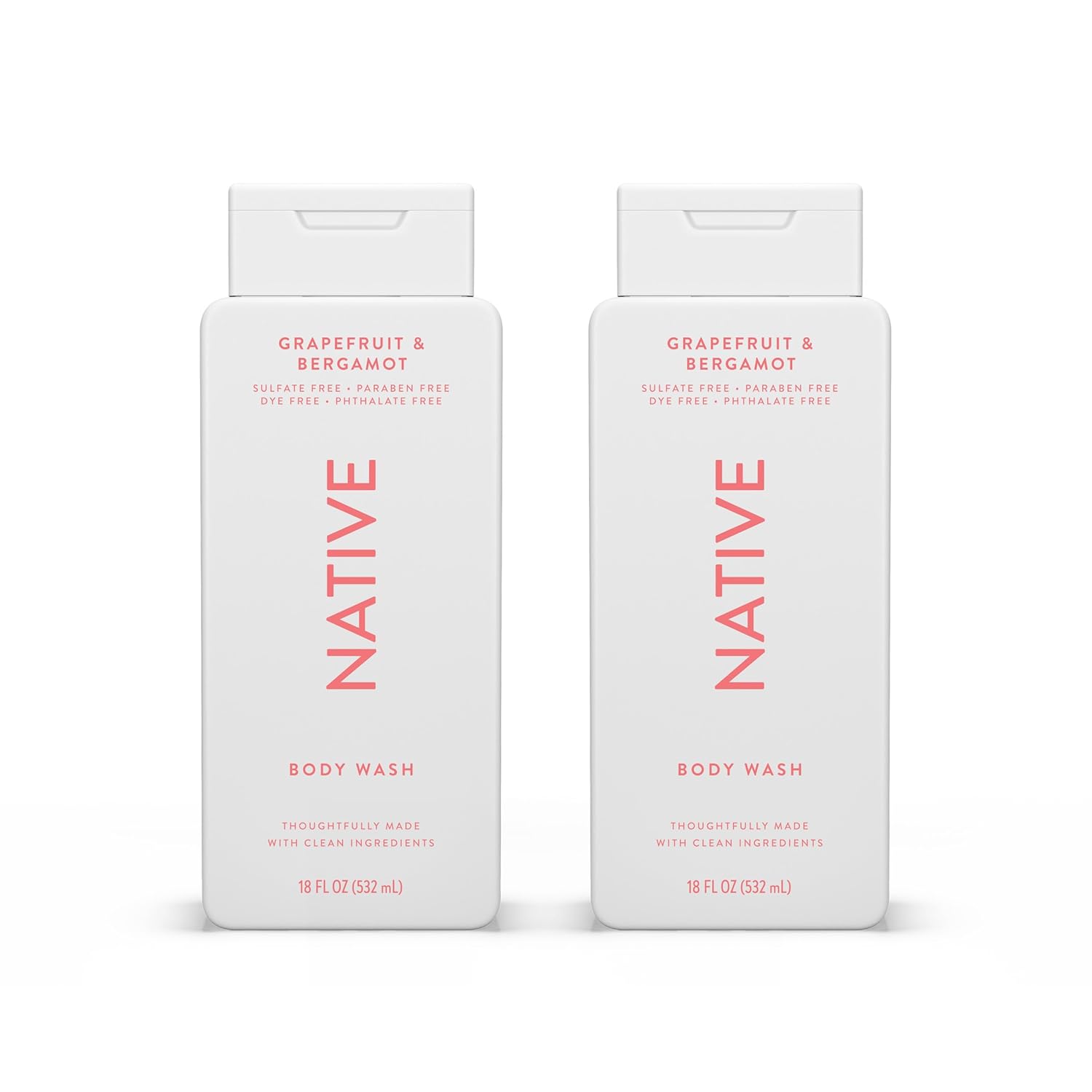 Native Body Wash Contains Naturally Derived Ingredients | For Women & Men, Sulfate, Paraben, & Dye Free Leaving Skin Soft and Hydrating | Grapefruit & Bergamot 18 oz - 2 Pk