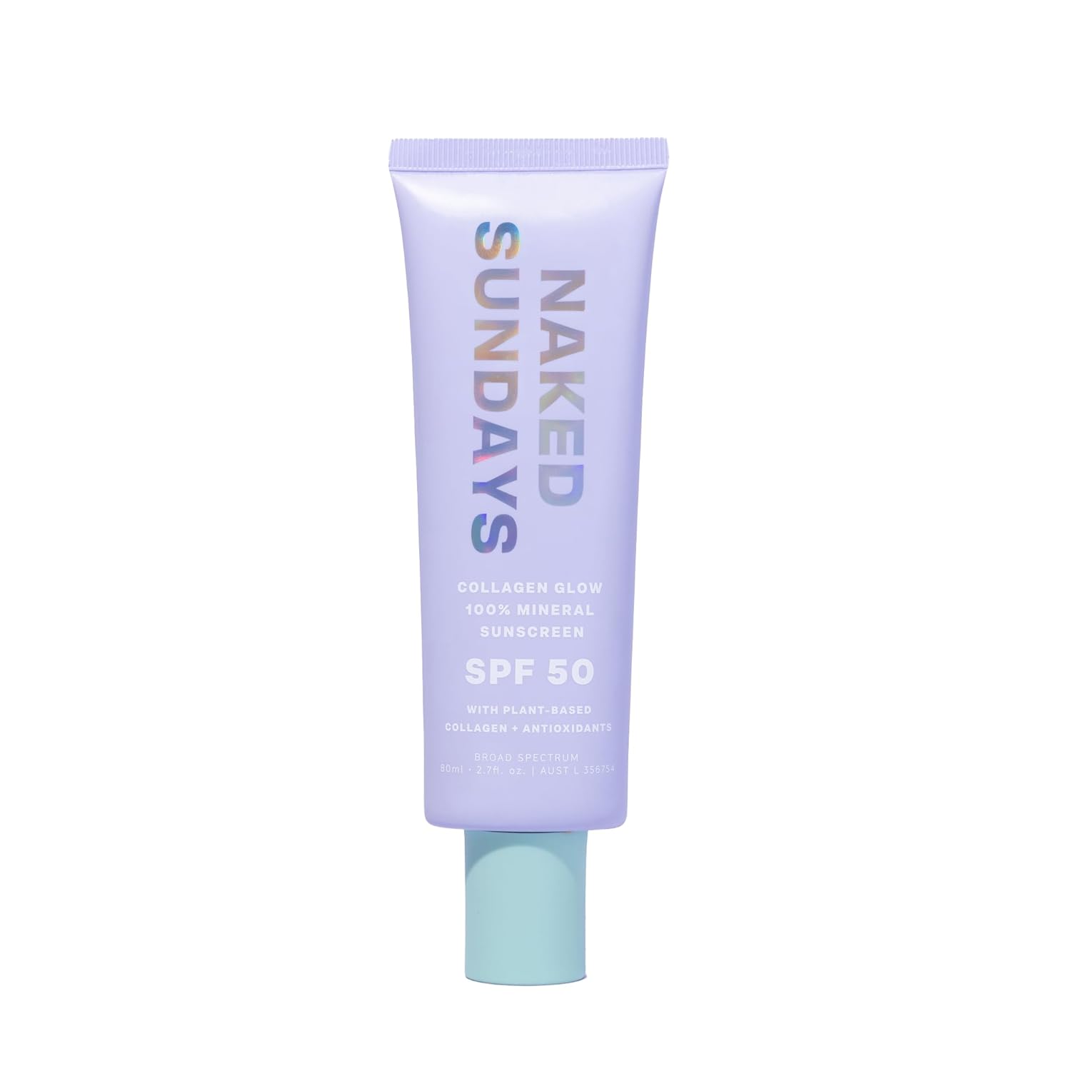 Naked Sundays SPF 50 Mineral Glow Sunscreen, Daily Hydrating Facial Moisturizer & Primer with Zinc Oxide, Sheer Tint, Broad Spectrum SPF Lotion (Jumbo 80ml)