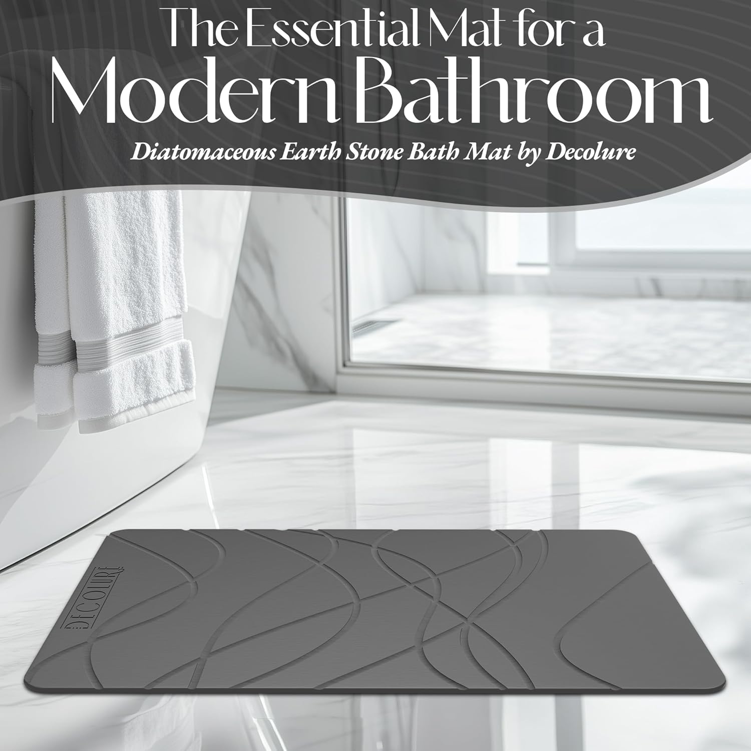 DECOLURE Stone Bath Mat Large, Quick Dry & Non-Slip Diatomaceous Earth Shower Mat for Bathroom, Luxurious & Easy to Clean Diatomite Stone Mat for Bathroom, Kitchen, High Density (Large, Grey)