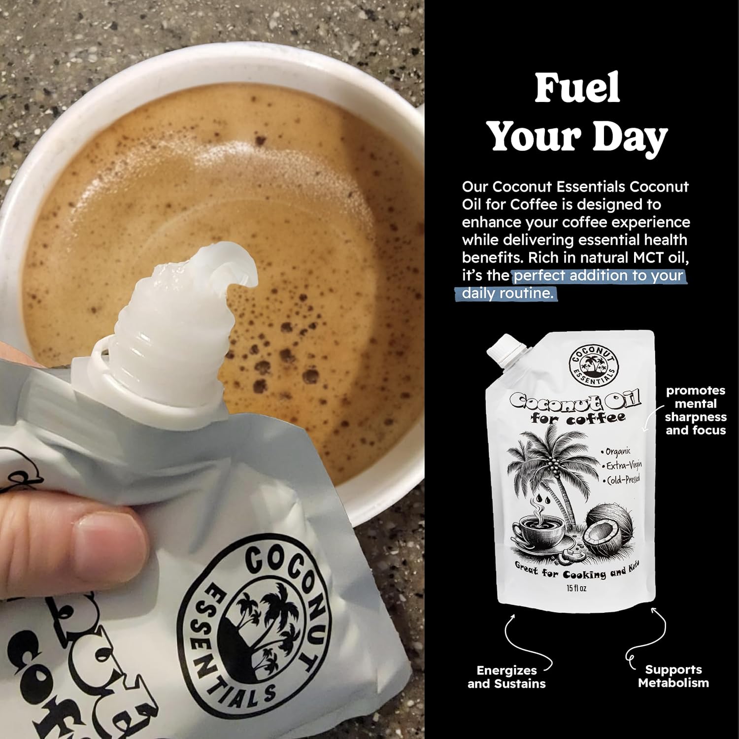 - Enhance Your Coffee Experience - Add a rich and creamy texture to your coffee with Coconut Essentials Coconut Oil for Coffee. Perfect for Bulletproof coffee or your own blend, this oil delivers a smooth, energizing boost to kickstart your day, promoting brain health and mental clarity.
