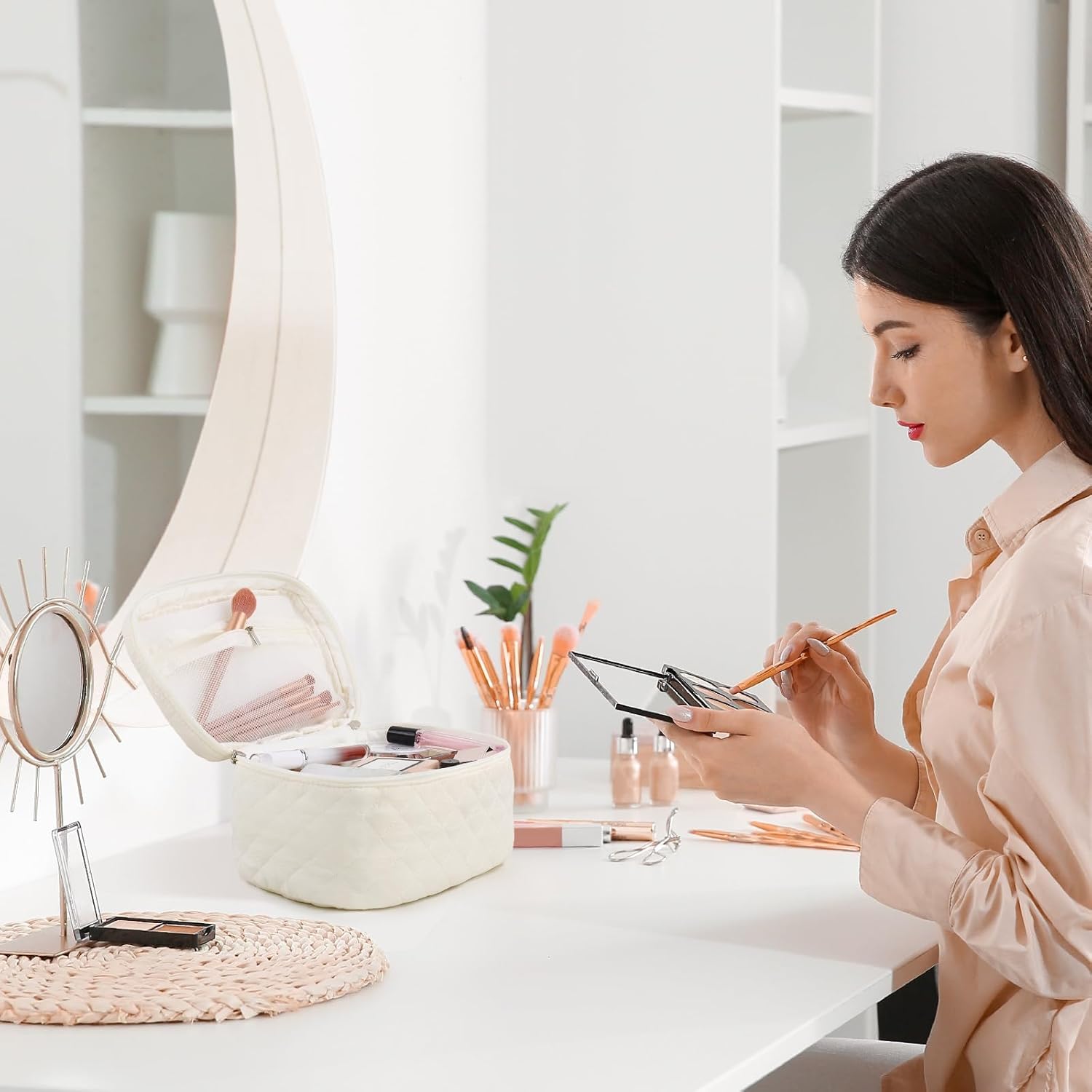 - ✅ High-Quality Material: Crafted from high-quality cotton, this makeup bag is easy to clean and maintain. The durable construction and premium materials guarantee long-lasting use and protection for your belongings.