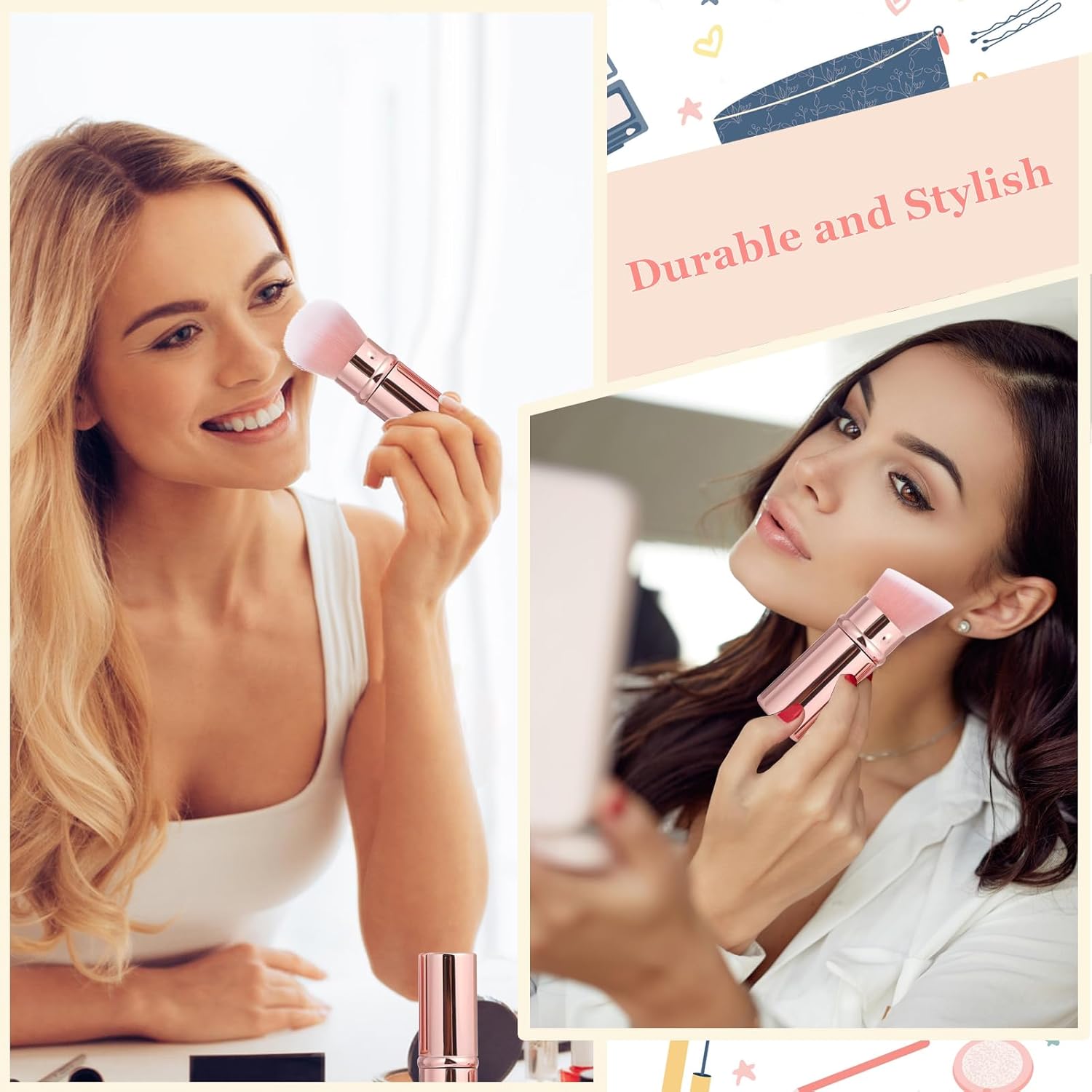 Retractable Makeup Brush 2 Pack, Travel Kabuki Powder Makeup Brush, Foundation Face Blush Brushes for Blending Liquid, Blush, Bronzer, Buffing, Sunscreen,Flawless Cosmetics