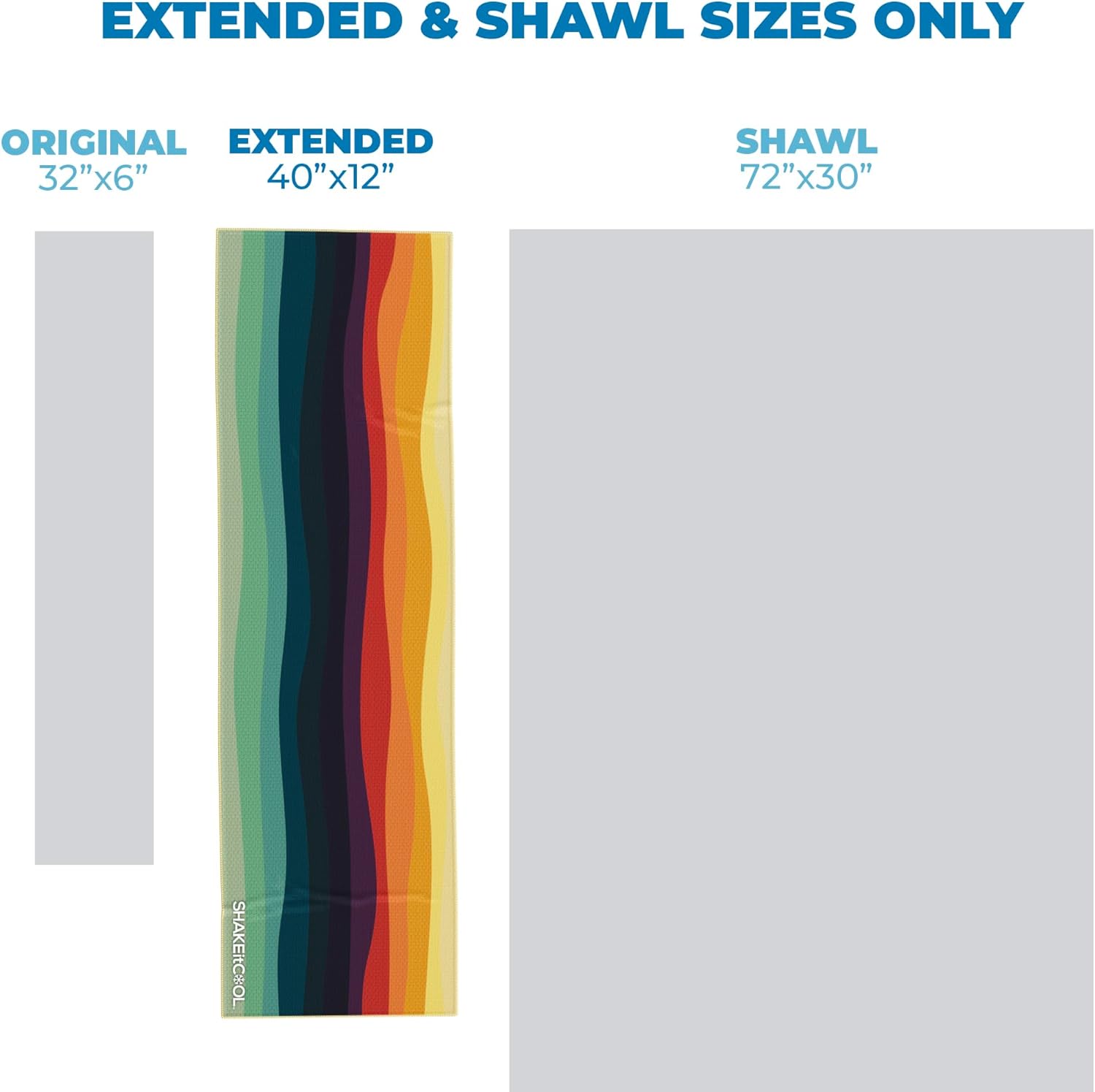 SHAKEitCOOL Extended Size Cooling Towel – Be Cool in Style - Heat Relief, Soft, Lightweight, Sun Protection, Easy Clean - Perfect for Biking, Hiking, Running, Yoga, Golf, Gardening - Sunset Wave M
