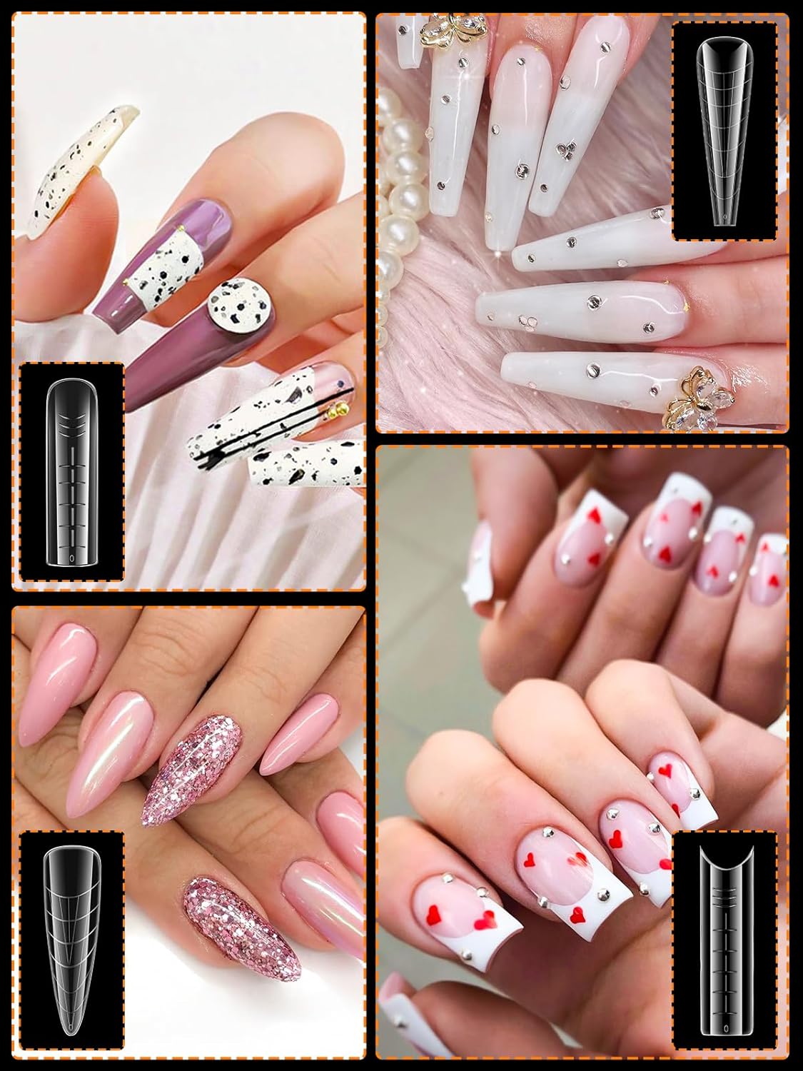 - 【Easy to Use】They are artificial nails forms, used as the nail mold. Poly nail gel dual forms are designed with the good length and clear scales on the nail surface, so that you can easy to design and control the length or shape you want. No glue needed, just brush the acrylic/poly gel into the forms and then place on the nail plate, hold on for a few seconds and cure it. Easy to shape in different lengths, and pull away easily from the dried acrylic nails, leaving a very shiny nail