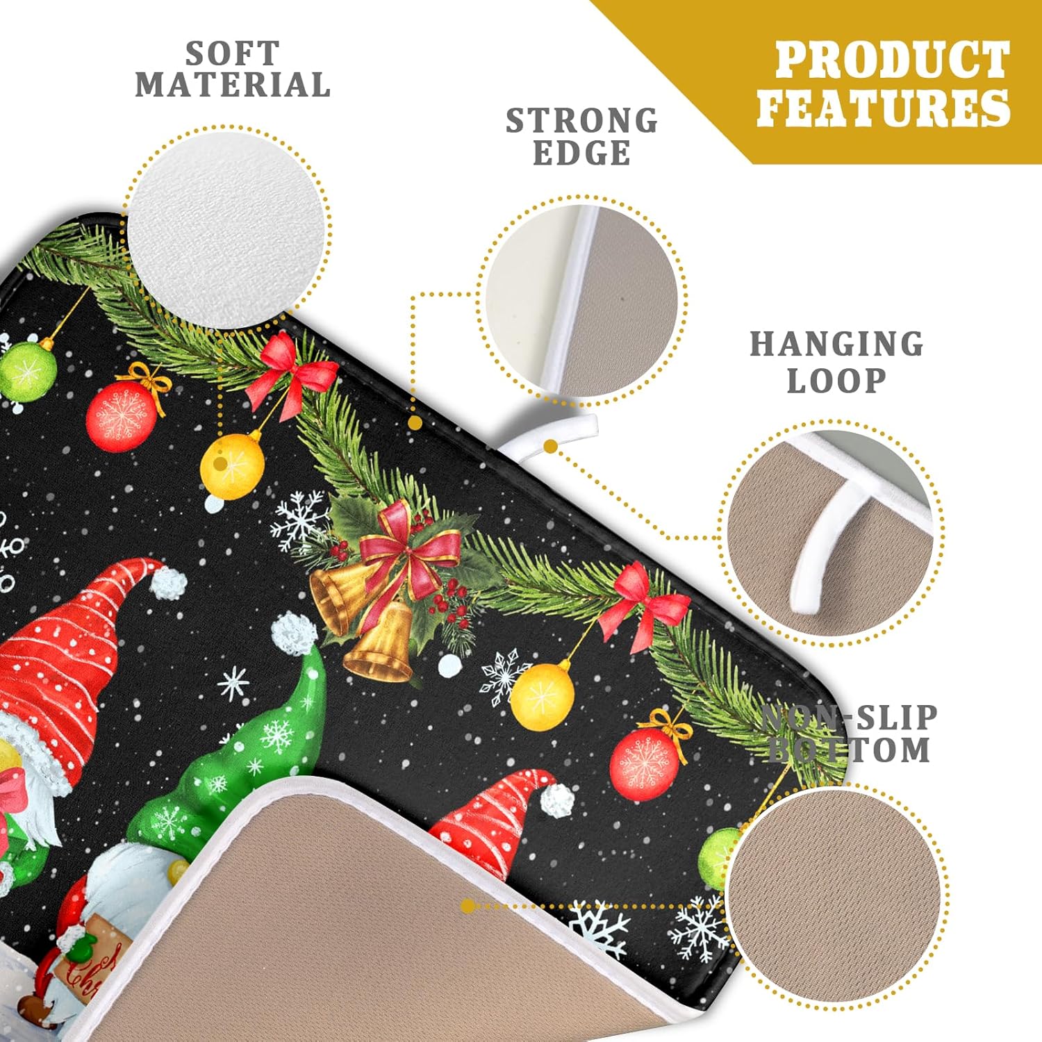 Merry Christmas Dish Drying Mat Black Gnomes Dish Drainer Mats 16x18 Inch Holiday Decorative Absorbent Dishes Pad for Kitchen Counter Sink