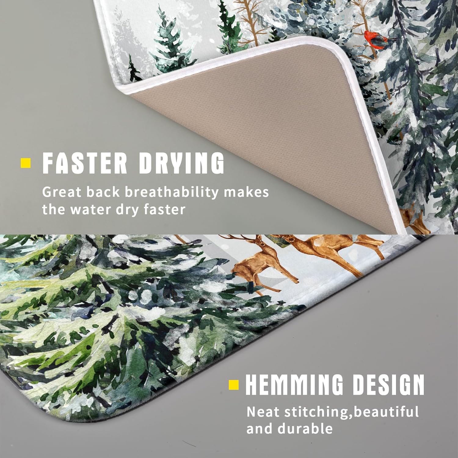 - 【Protect Tableware】Place your dishes on it or under dish racks, the winter forest dish mat prevents bowls, glassware, and more tablewares from being scratched or worn, can be used as dish drying mat, sink mat, dishes drainer mats to keep the countertop dry and tidy.