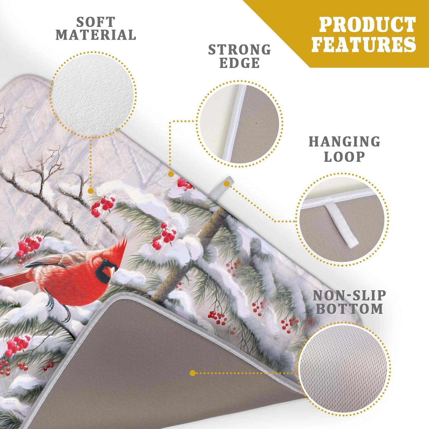 - 【Wide Usage】The dish drying mat designed with cardinal bird pattern, it is beautiful, soft, and durable. Not only a dish drying mat, cup mat, heat resistant mat, you can also use it as a kitchen countertop insulation mat. It is also a good choice to use it as a pet mat, picnic mat.