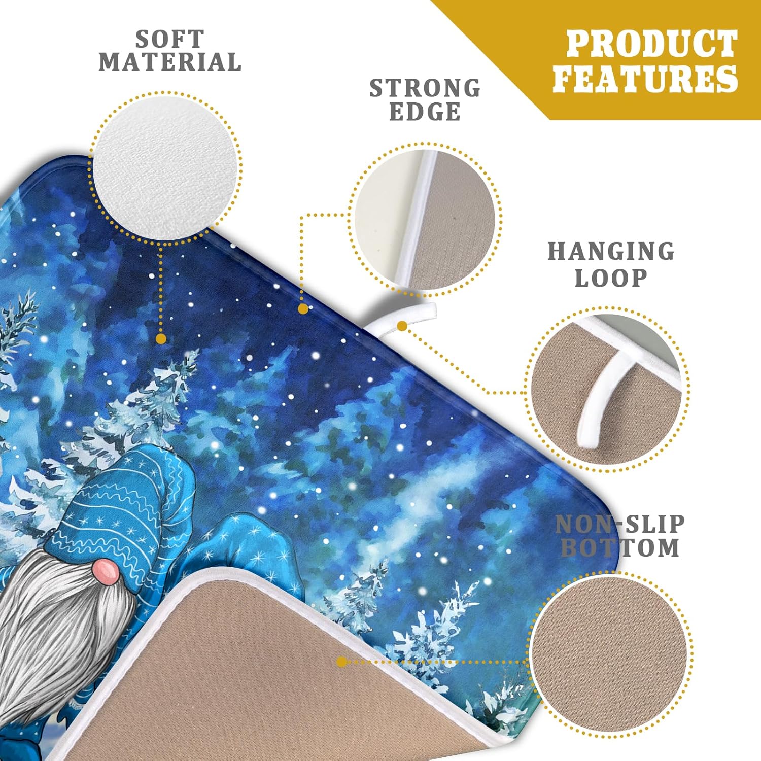 Winter Blue Gnome Dish Drying Mat for Kitchen Counter Pine Tree Microfiber Dish Pad Absorbent Reversible Fast Dry Draining Mats 16x18 Inch
