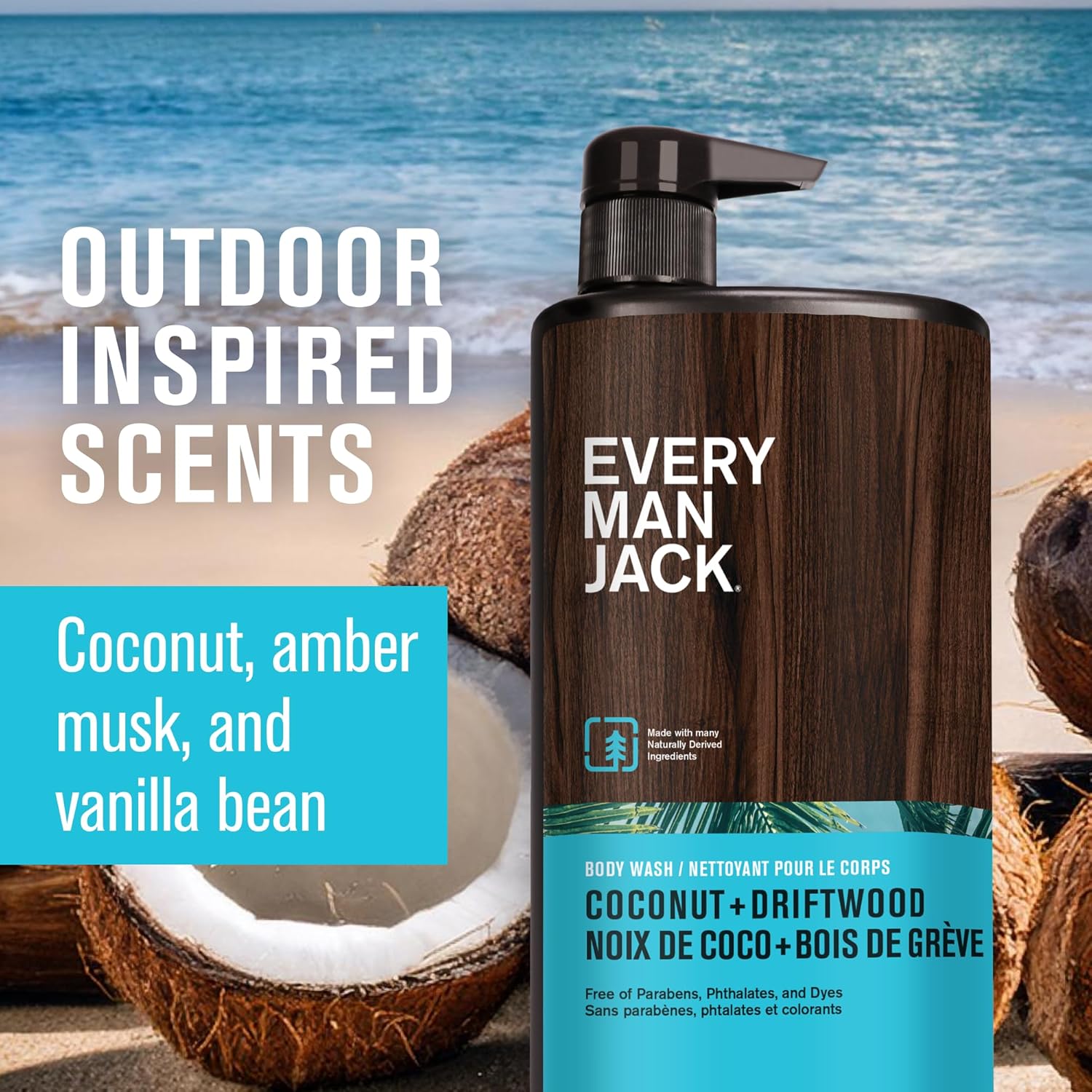 Every Man Jack Coconut + Driftwood Mens Body Wash for All Skin Types - Cleanse, Hydrate, and Smell Great - Free of Parabens, Phtalates, and Dyes - 33.8 fl oz (2 Pack)