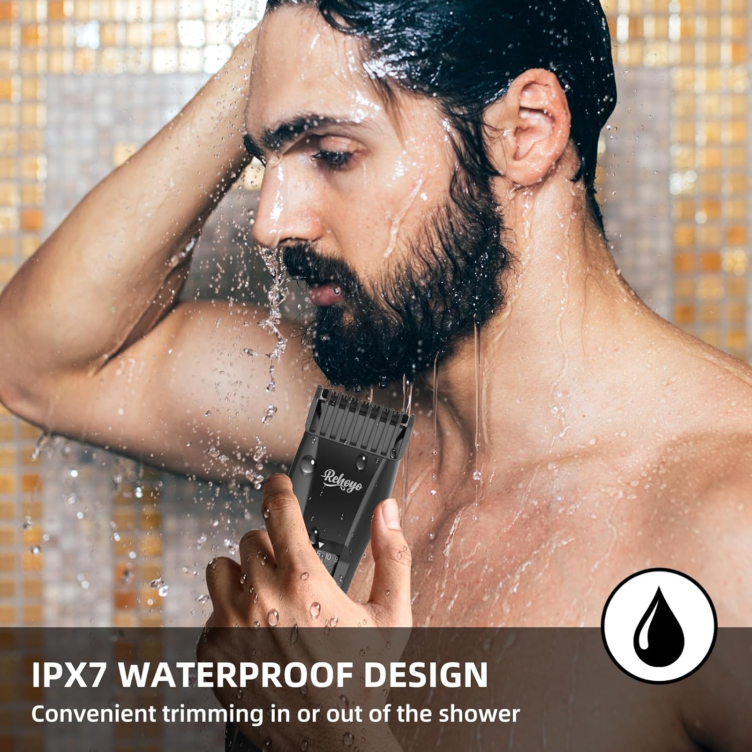 - IPX7 Waterproof for Wet and Dry Use: Experience unparalleled convenience with the REHOYO waterproof mens beard trimmer for men, featuring an IPX7 waterproof design. Use it confidently in the shower or easily clean it under running water for a quick, hygienic experience. Whether you prefer a quick dry trim or a thorough wet shave, the REHOYO electric beard trimmer for men adapts seamlessly to your lifestyle.