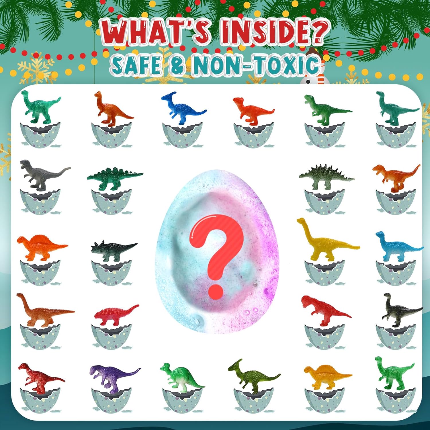 - Inside Surprise Toy: Each bath bomb contains a hidden toy surprise, adding an element of excitement and anticipation to every bath. Watch your child’s eyes fill with joy! Our dinosaur toys are made of safe materials and passed the U.S. Children's Products Toy Safety Test. These dinosaur toys do not pose a choking hazard and can also be used for collection, allowing children to learn about ancient creatures and cultivate their imagination. So, this bath bomb gift set will give boys and girls the best surprise at bath time