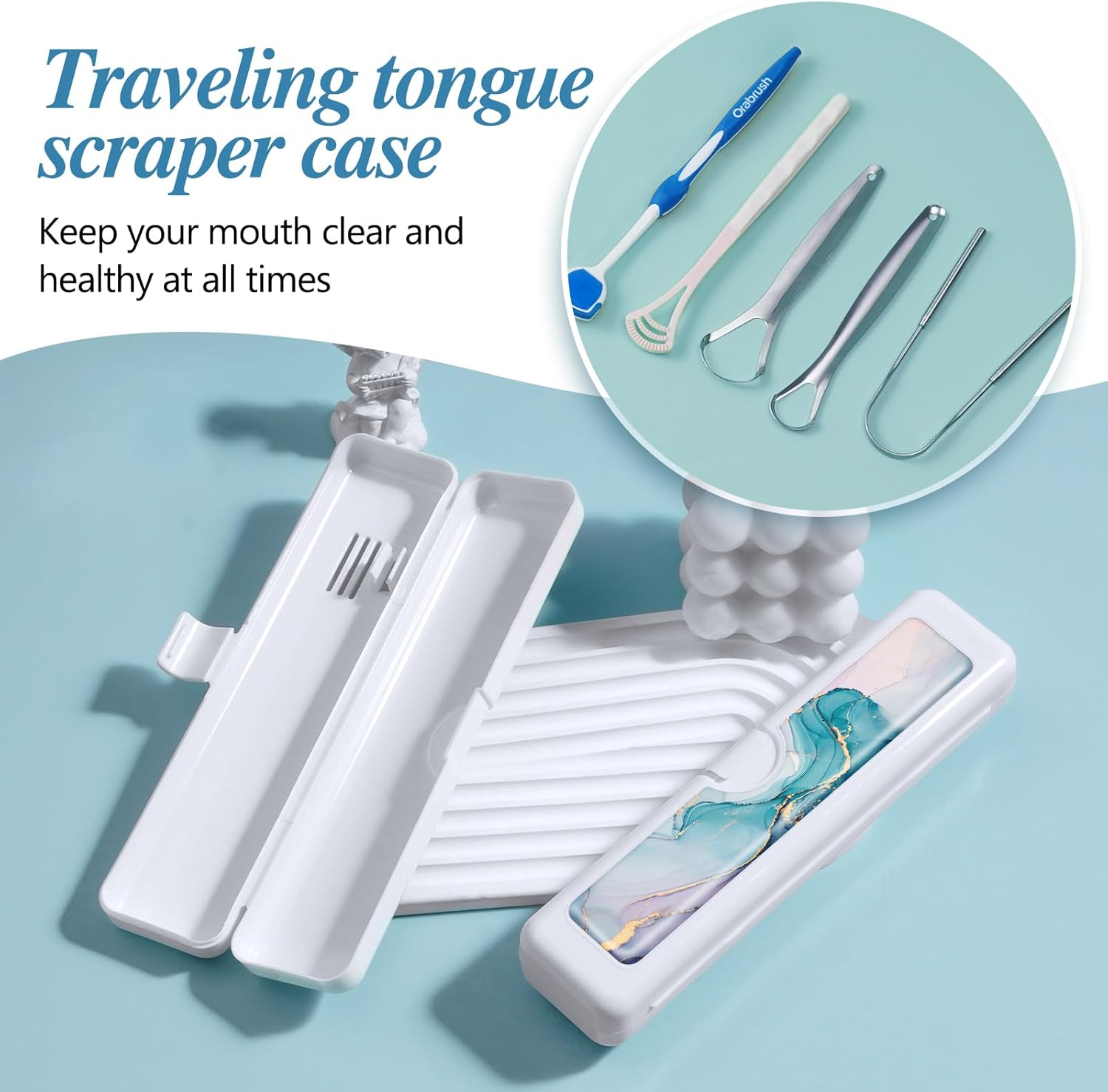 2 Pcs Toothbrush Travel Case - Colorful Pattern, Holder and Covers for Toothbrushes, Includes Tongue Scraper Case