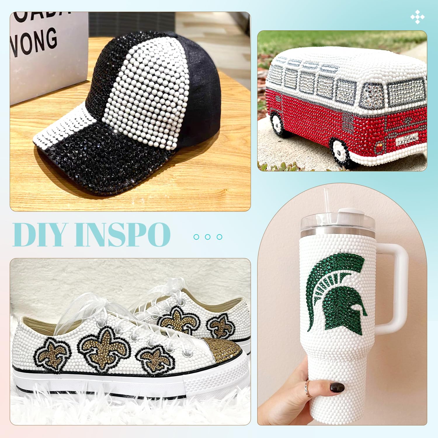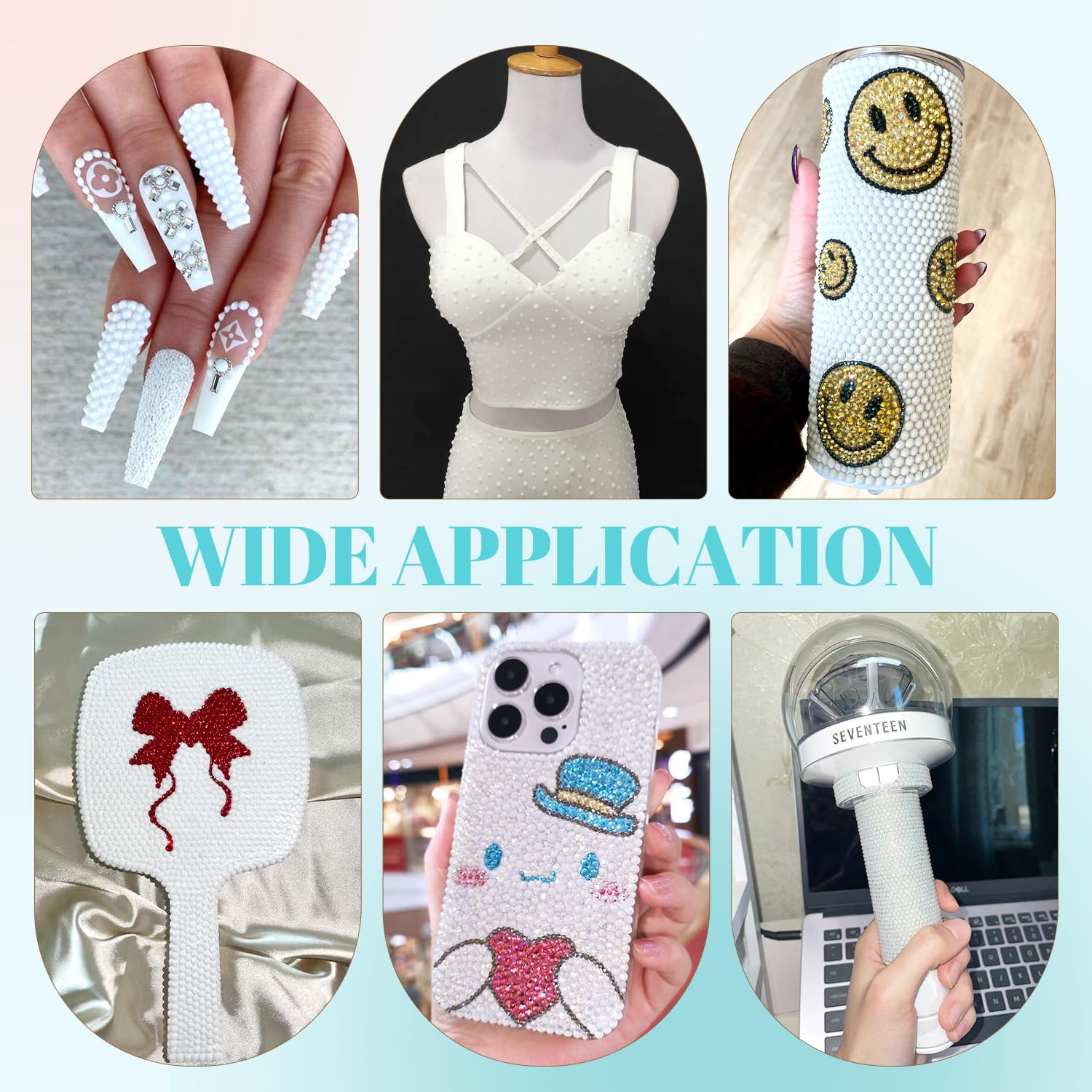 - 💎WIDE APPLICATION -- These sparkling iridescent resin crystals are perfect for creating dazzling looks. Use them for bedazzling DIY crafts like shoes, tumblers, mugs, bottles, phone cases, popsockets, scrapbooks, photo frames, diamond paintings, greeting cards, bags, glasses, guitars, keychains, hats, masks, hair clips, bracelets, wristbands, clothing, wedding dresses, and more. Apply it to what you want to bling!