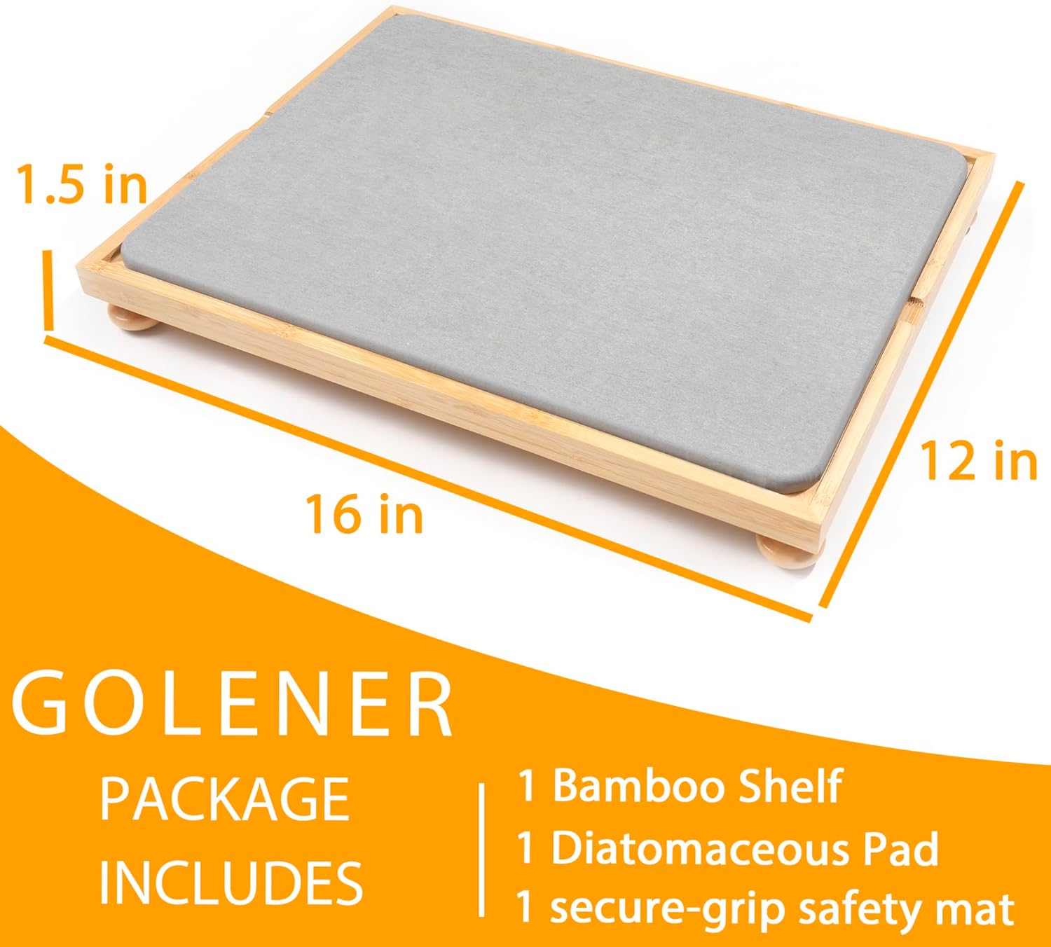 Golener Stone Drying Mat for Kitchen Counter, Dish Drying Pad with Bamboo Rack, Super Absorbent Diatomaceous Earth and Drying Rack, Multi-purpose Quick Drying Mat Rack for Kitchen, 16”x12”, Dark Grey