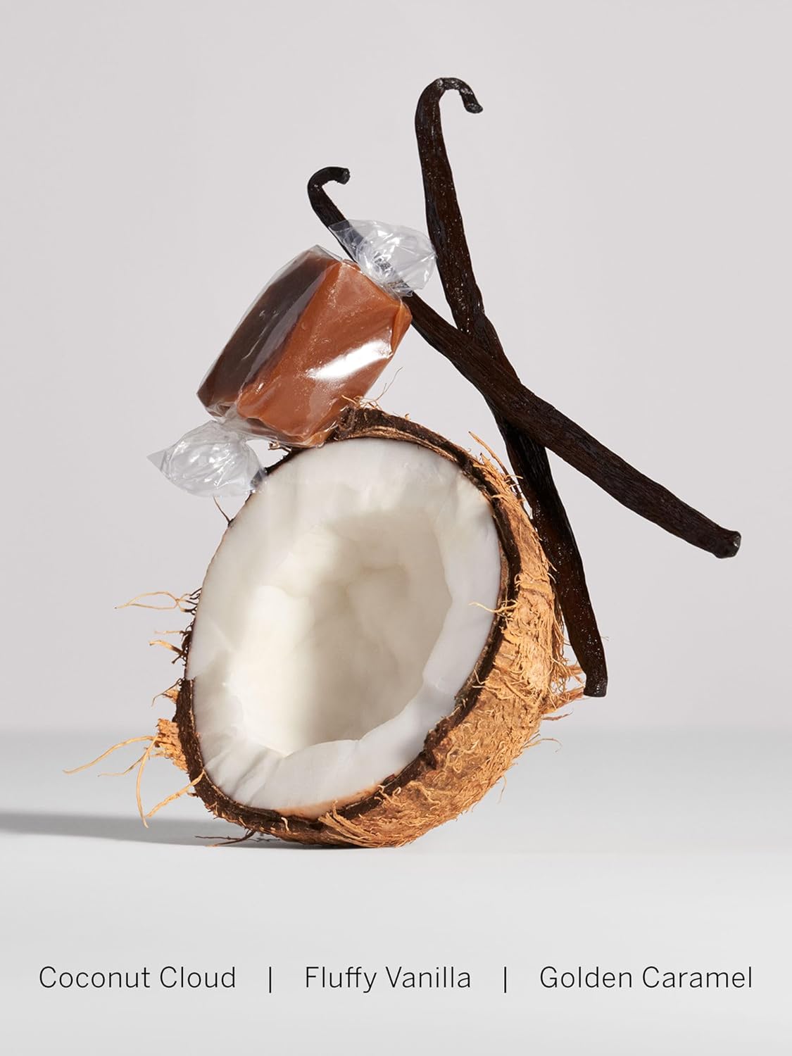 - Scent Notes: coconut cloud, fluffy vanilla & golden caramel
