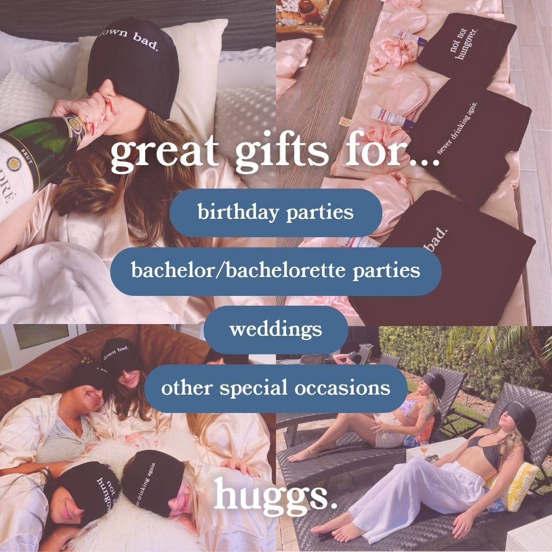 Huggs Migraine Relief Cap - Never Drinking Again - Cooling Gel Head Wrap, Cold Compress Cap for Headache, Stress, & Tension