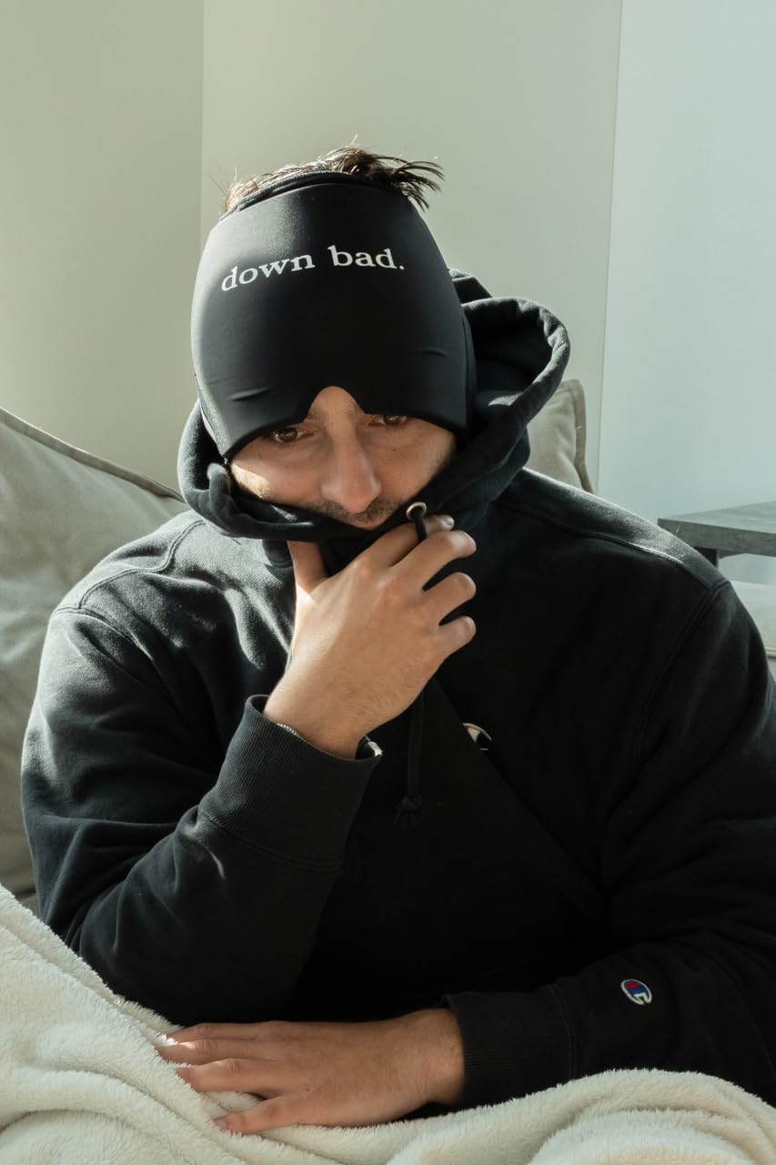 Huggs Migraine Relief Cap - Down Bad - Cooling Gel Head Wrap, Cold Compress Cap for Headache, Stress, & Tension