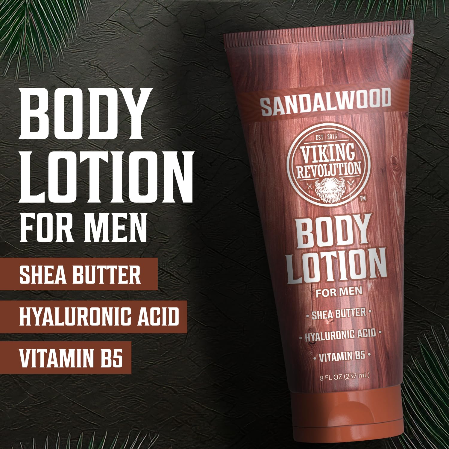 Viking Revolution Sandalwood Body Lotion for Men – Mens Lotion for Dry Skin with Shea Butter, Hyaluronic Acid and Vitamin B5 – Nourishing Mens Body Lotion for Hydrated and Smooth Skin (8oz, 1 Pack)