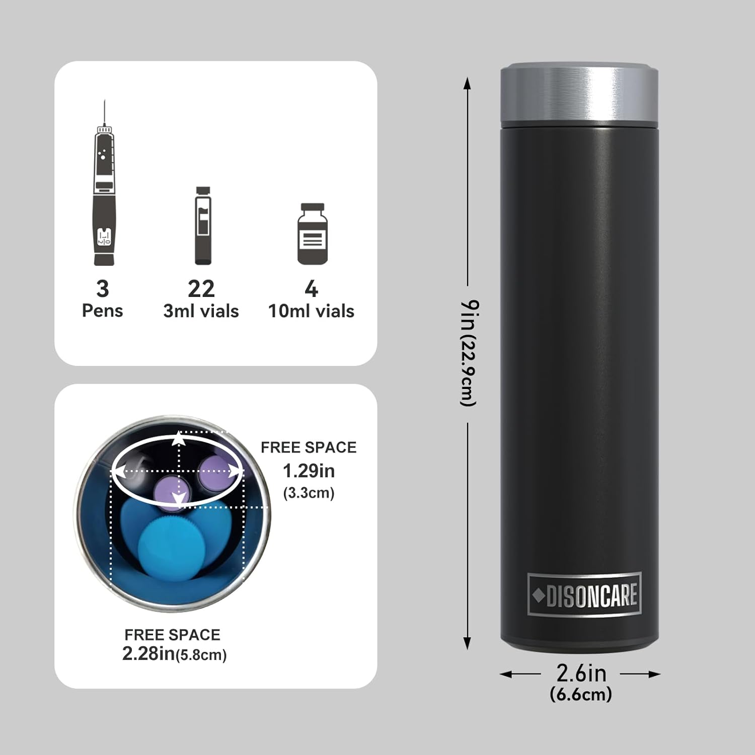 DISONCARE Odyssey 60H 3 Insulin Pens Cooler Travel Case Medication Cooler for Travel TSA Approved Diabetic Insulina Medicine Travel Cooler Bag Ice Pack with Medical Tag(Midnight Black