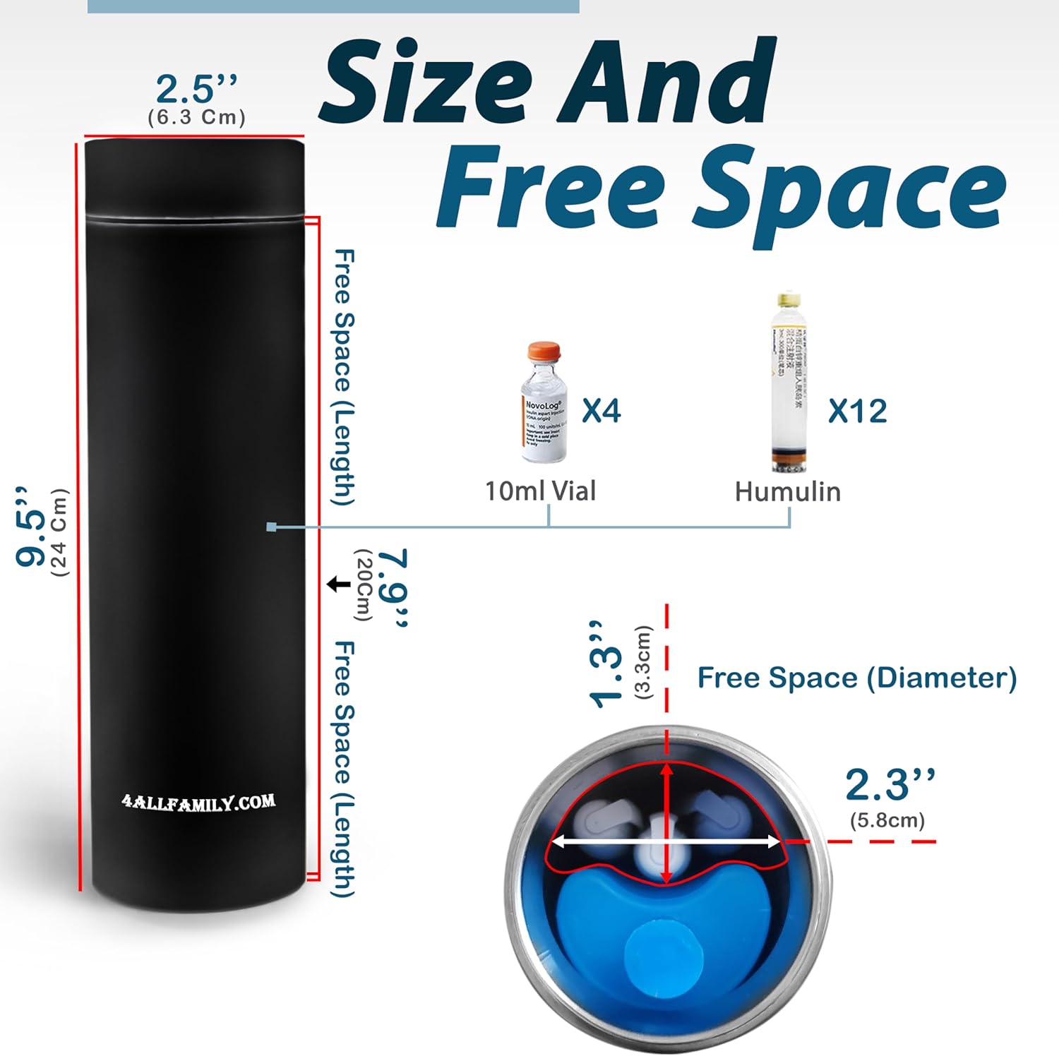 4ALLFAMILY Insulin Pens Cooler Travel CASE Medicine Cooler Box EpiPen Carry Medical Bag TSA Approved Diabetic Travel case with Biogel Ice Pack (Medium) (Medium Pro Black)
