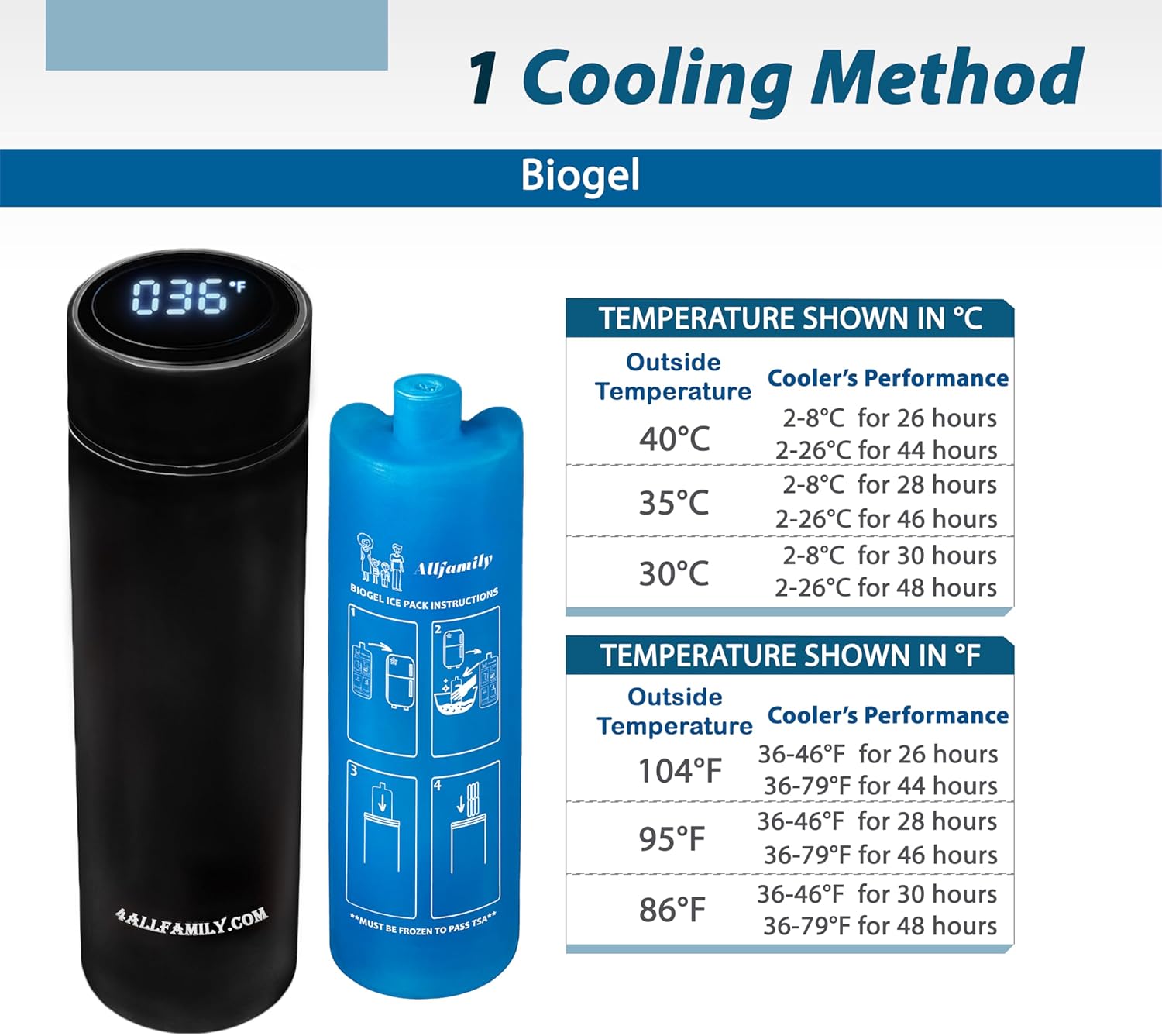 - ADVANCED BIOGEL TECHNOLOGY: Eliminate melted water packs & frozen meds, our Biogel freezes at 36°F to keep a stable range, protecting medicine from damage; this medicine cooler for travel TSA approved design is reusable and practical