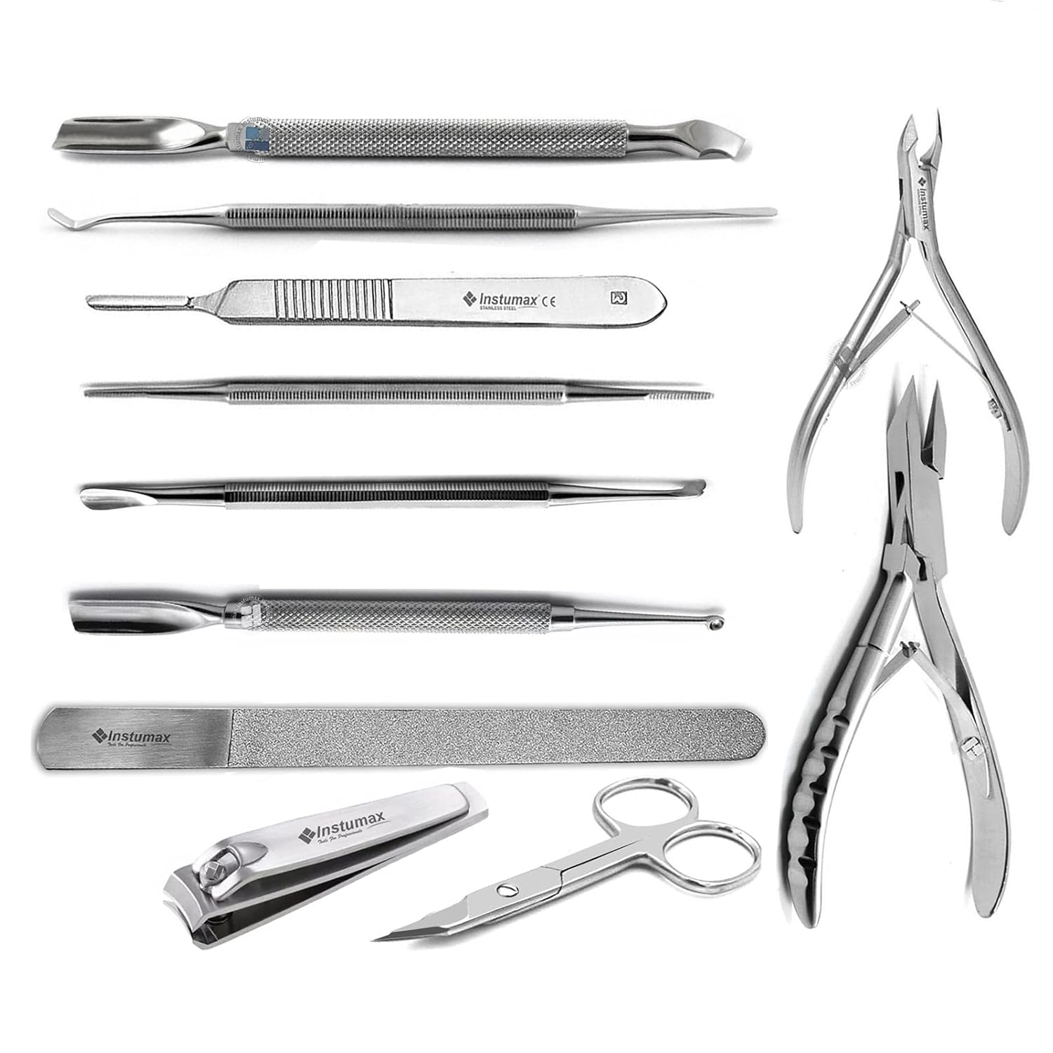 - Complete Kit: Includes diamond nail file, cuticle pusher, dead skin remover, scalpel, toenail lifter, nail forceps, ingrown nail nipper, cuticle scissors, and nail cutter.