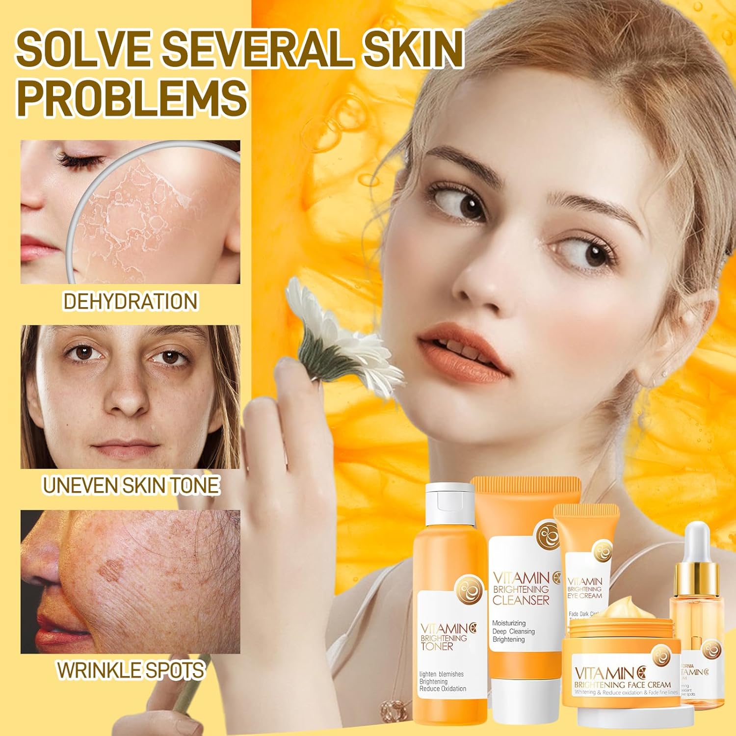 Skin Care Set, Vitamin C Skin Care Sets & Kits, Skin Care for Teenage Girls Gift Set with Cleanser, Toner, Serum, Eye Cream, Facial Cream, Facial Skin Care Sets & Kits for Teenage Girls Women
