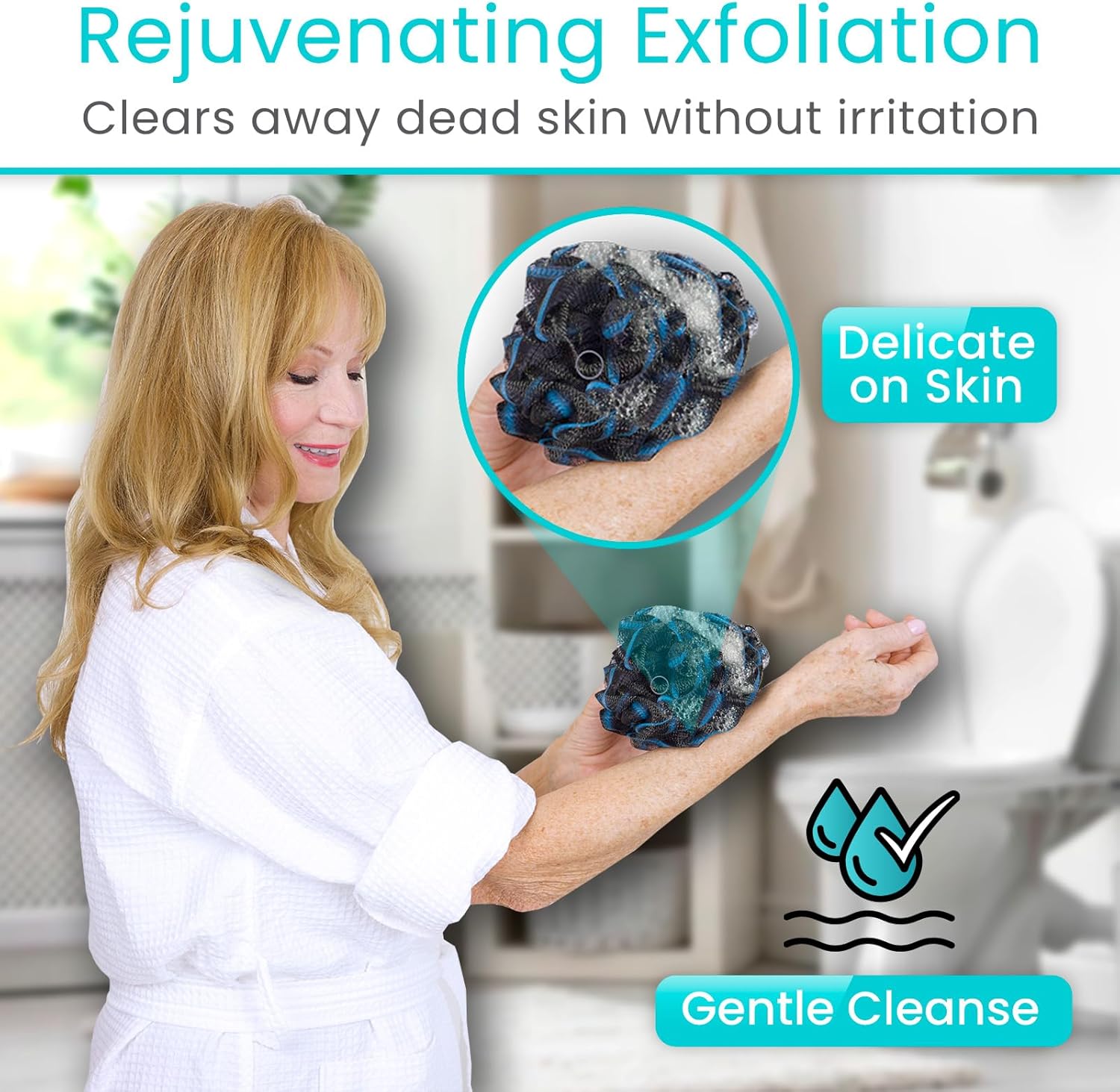 - Vive Bendable Loofah Brush with Long Handle - Extended Luffa Scrubber - Shower Stick w/ Loofa for Exfoliating Skin - Bath Sponge for Women and Men