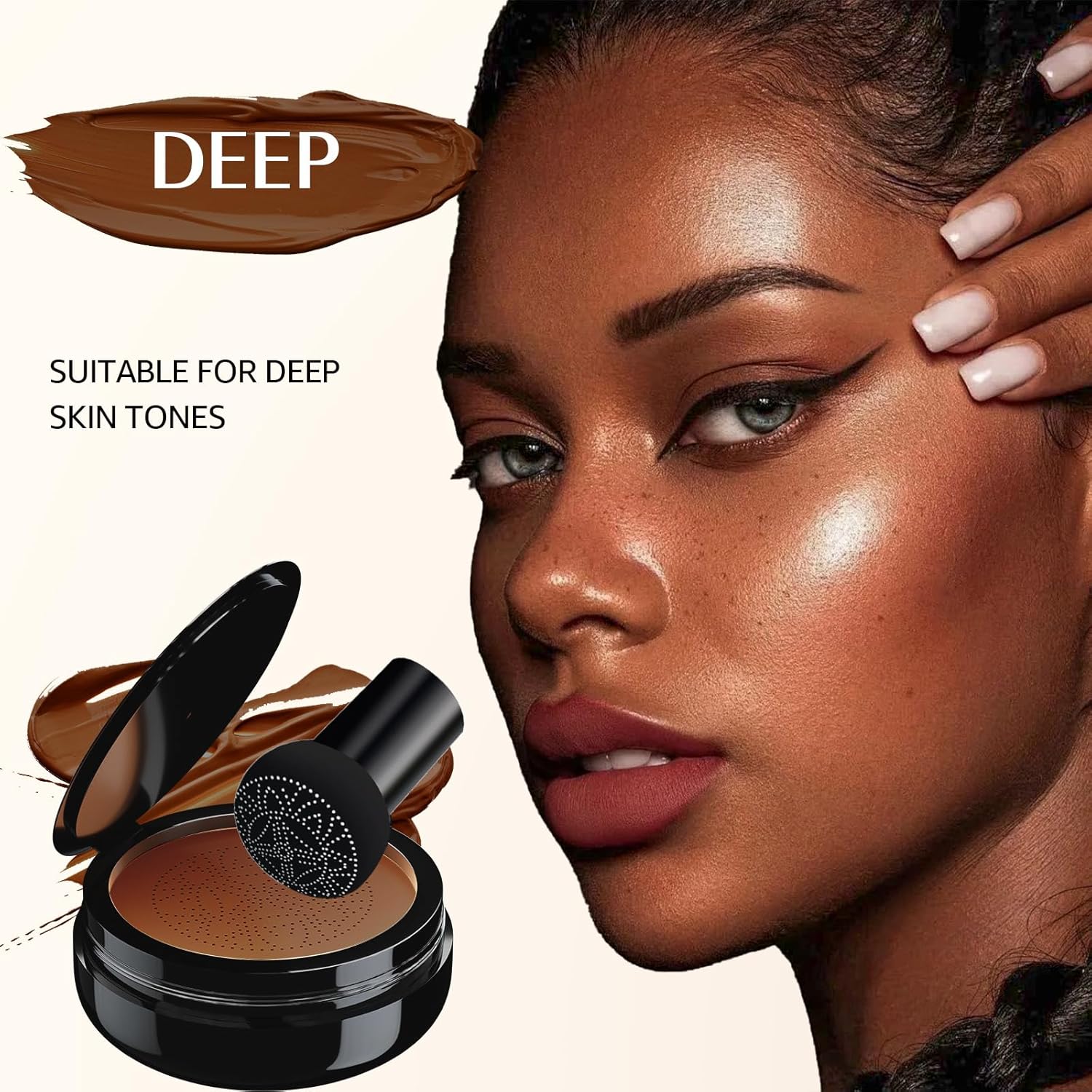 Mushroom Head Air Cushion CC Cream - BB Cream Face Makeup Foundation for Mature Skin Moisturizing Concealer Brighten Long-Lasting, Even Skin Tone for All Skin Types (Deep)